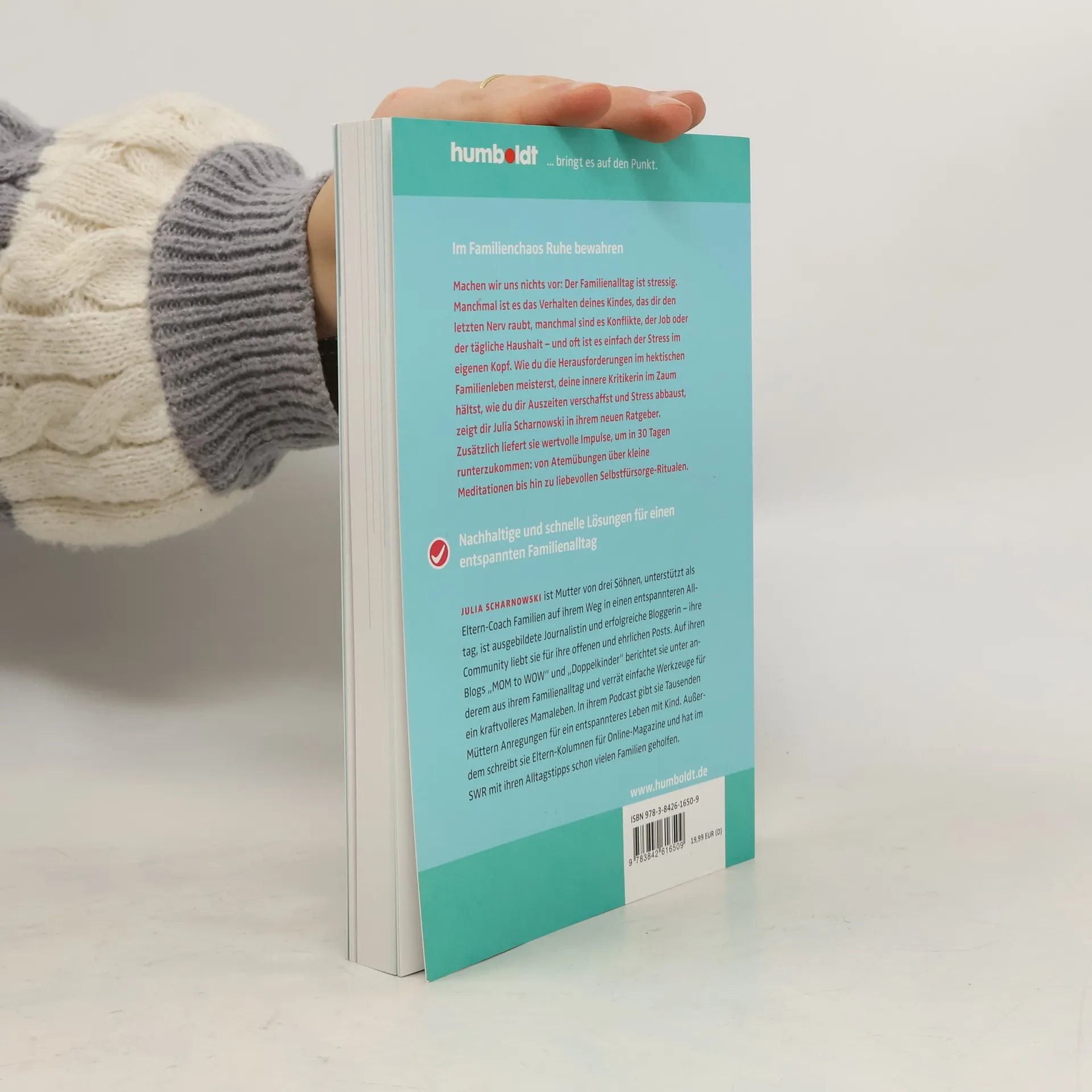 Machen wir uns nichts Der Familienalltag ist stressig. Manchmal ist es das Kind, das einem den letzten Nerv raubt, manchmal sind es Konflikte mit anderen Verwandten oder die täglichen Haushaltsaufgaben - und oft ist es einfach der Stress im eigenen Kopf. Wie Mütter im hektischen Familienleben ihre innere Kritikerin im Zaum halten, wie sie sich Auszeiten verschaffen, Kraft tanken und Stress abbauen, zeigt Julia Scharnowski in ihrem neuen Ratgeber. Zusätzlich liefert sie wertvolle Impulse, um in 30 Tagen noch mehr runterzukommen - von Atemübungen über kleine Meditationen bis hin zu liebevollen Selbstfürsorge Ritualen.Julia Scharnowski ist Mutter von drei Söhnen, erfolgreiche Bloggerin, arbeitet als Eltern-Coach und ist ausgebildete Journalistin - ihre Community liebt sie für ihre offenen und ehrlichen Posts. Auf ihren Blogs 'momtowow' und 'Doppelkinder' berichtet sie unter anderem aus ihrem Familienalltag und verrät einfache Werkzeuge für ein kraftvolleres Mamaleben. In ihrem Podcast gibt sie tausenden Müttern Anregungen für ein entspannteres Erziehen. Außerdem schreibt sie Eltern-Kolumnen für Online-Magazine und hat im SWR mit Ihren Alltagstipps schon vielen Familien geholfen.