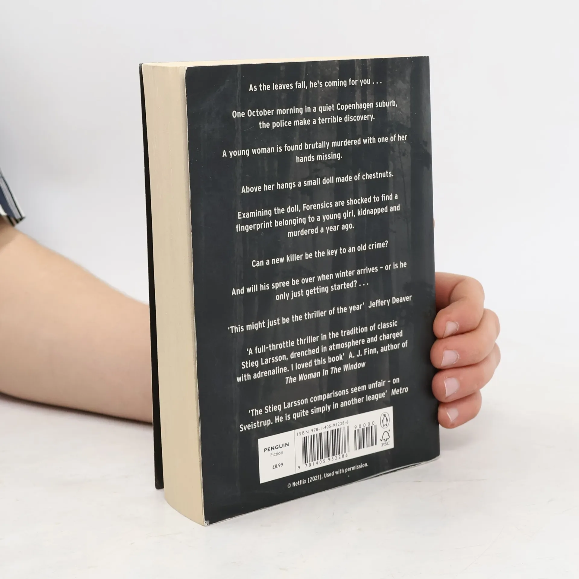 A young woman is found brutally murdered in a playground and one of her hands is missing. Above her hangs a small doll made of chestnuts. Ambitious young detective Naia Thulin is assigned the case. Her partner, Mark Hess, is a burned-out investigator who's just been kicked out of Europol