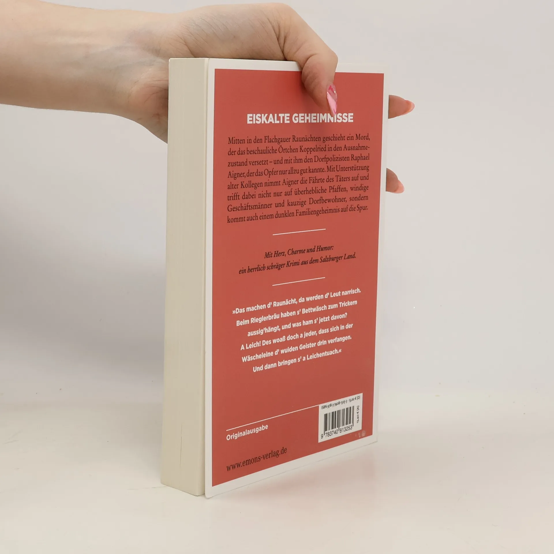 Ein herrlich schräger Krimi aus dem Salzburger Land. Mitten in der Flachgauer Raunacht geschieht ein Mord, der das beschauliche Örtchen Koppelried in den Ausnahmezustand versetzt – und mit ihm den Dorfpolizisten Raphael Aigner, der das Opfer nur allzu gut kannte. Mit Unterstützung alter Kollegen nimmt Aigner die Fährte auf und trifft bei der Suche nach dem Täter nicht nur auf überhebliche Pfaffen, windige Geschäftsmänner und kauzige Dorfbewohner, sondern kommt auch einem dunklen Familiengeheimnis auf die Spur.