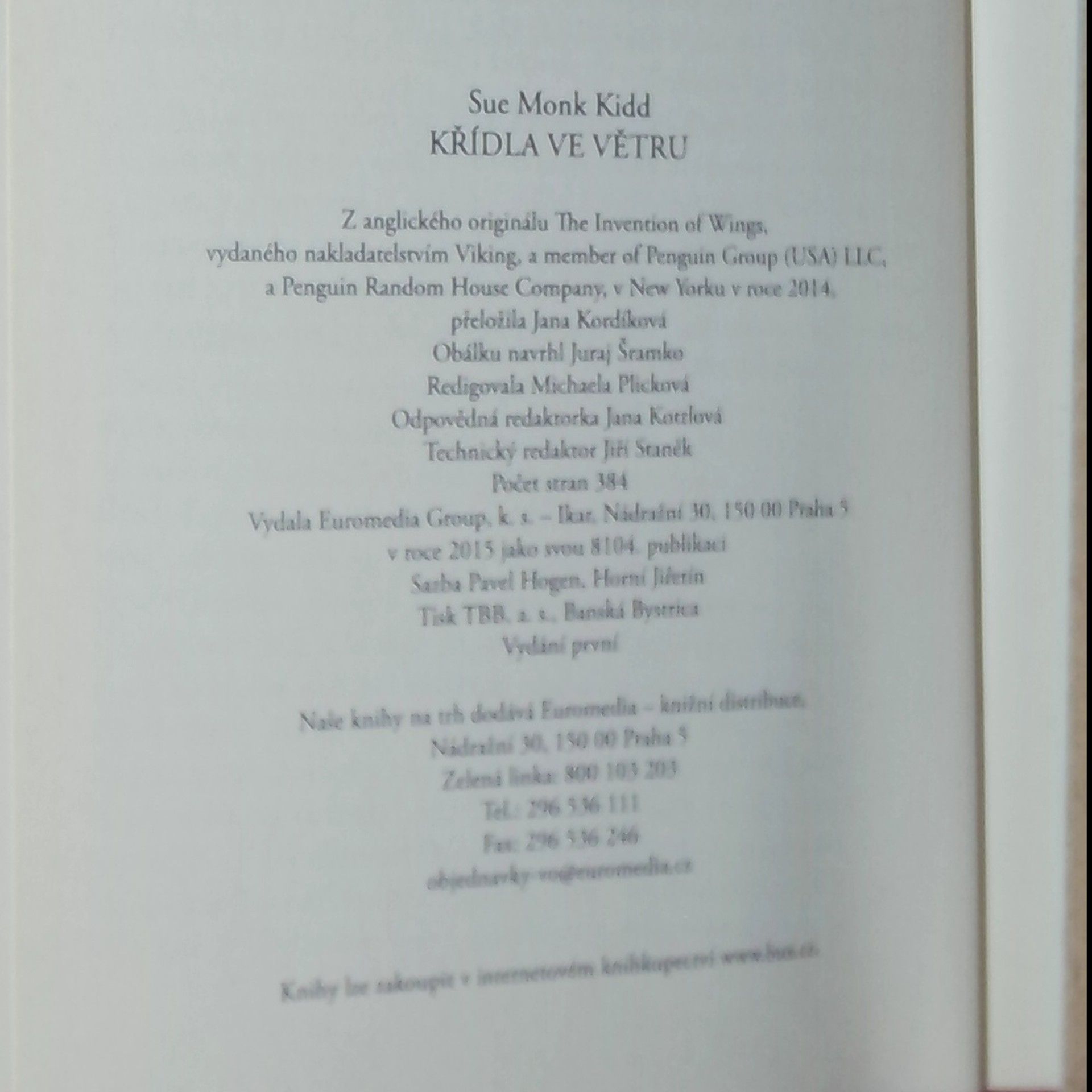 Křídla ve větru, Sue Monk Kidd, Jana Kordíková