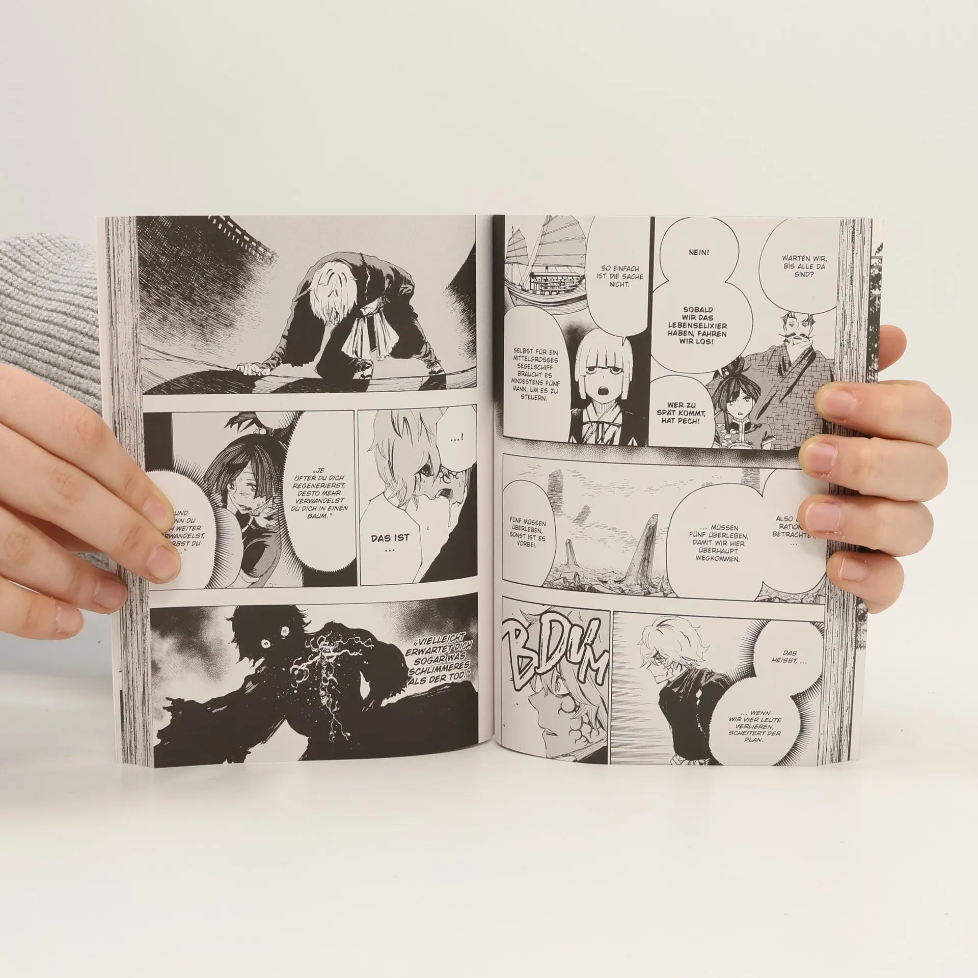 Gegen den Tensen Ran haben Gabimaru und Yuzuriha kaum eine Chance, denn er ist ihnen schon durch sein Tao-Element überlegen. Besonders Gabimaru, für den Rans Tao wie Gift wirkt, ist machtlos. An der Schwelle zum Tod angekommen, fasst der furchtlose Shinobi den Entschluss, auf Gedeih und Verderb zu überleben. Doch der Preis, den er hier, am Eingang zum Jenseits, dafür zahlen muss, ist hoch: Er wird nicht als Mensch, sondern als Monster zu seiner Frau zurückkehren.