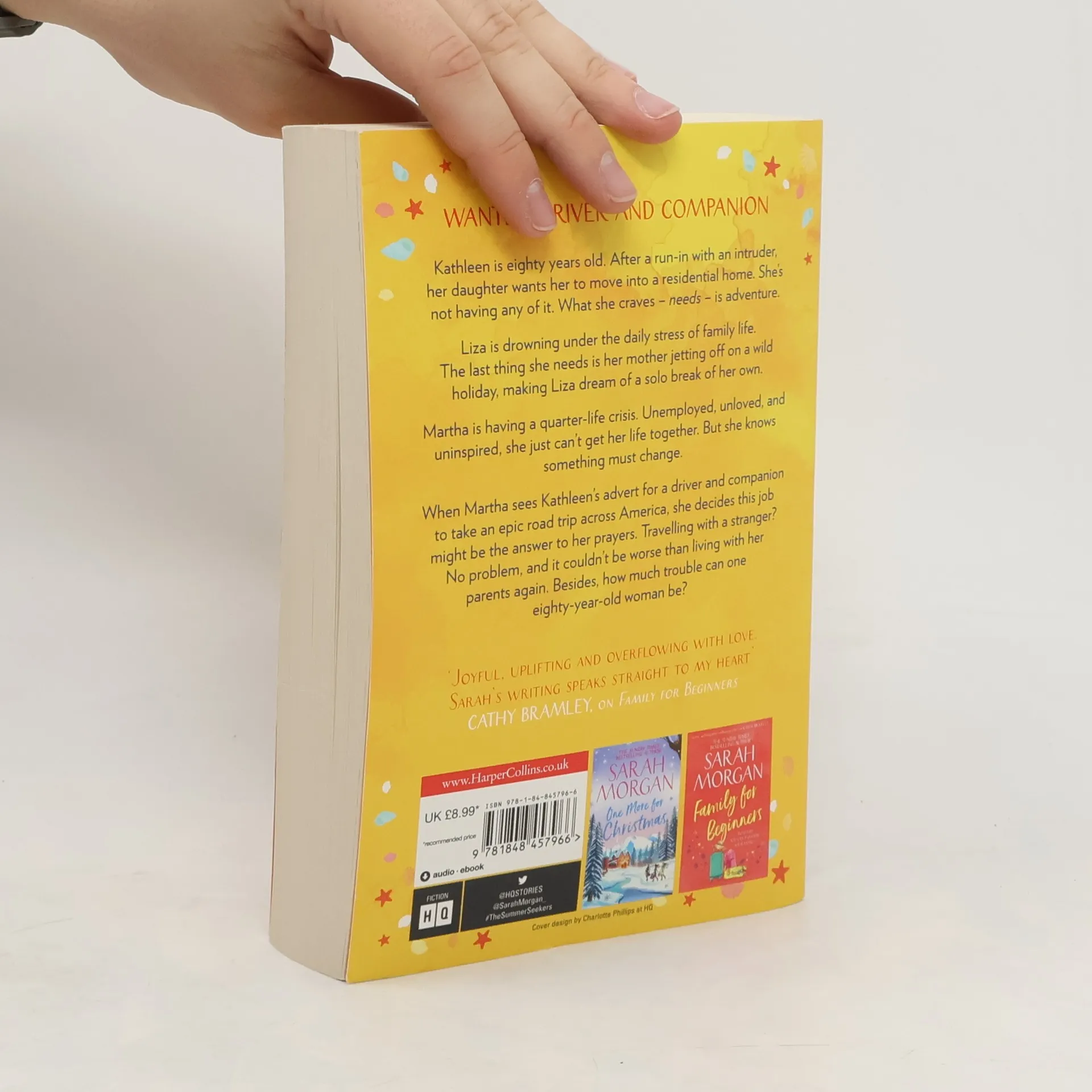 Kathleen is eighty years old. After a run-in with an intruder, her daughter wants her to move into a residential home. She's not having any of it. What she craves - needs - is adventure. Liza is drowning under the daily stress of family life. The last thing she needs is her mother jetting off on a wild holiday, making Liza dream of a solo break of her own. Martha is having a quarter-life crisis. Unemployed, unloved and uninspired, she just can't get her life together. But she knows something has to change. When Martha sees Kathleen's advert for a driver and companion to take an epic road trip across America, she decides this job might be the answer to her prayers. Travelling with a stranger? No problem. She's not the world's best driver, but it couldn't be worse than living with her parents again. And anyway, how much trouble can one eighty-year-old woman be? As these women embark on the journey of a lifetime, they all discover it's never too late for adventure...