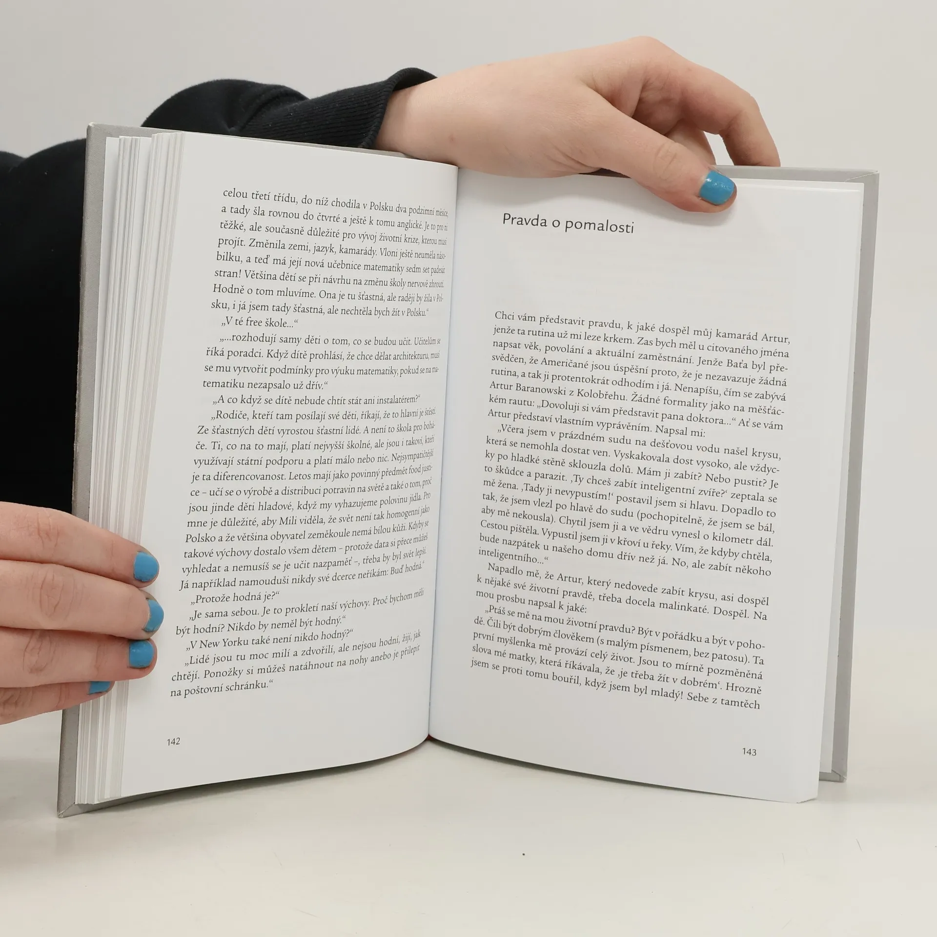 Jsou události, které vám převrátí život naruby, a chvíli trvá, než se s nimi vyrovnáte. Těžké období nedávno prožíval i známý polský reportér. Vyrovnával se s ním pomocí slov, a tak vznikla jeho nejnovější kniha působivých příběhů z vlastního i cizího života. V citlivě psaných textech hledá autor nový smysl života, životní filozofii, svou i cizí pravdu. Hledá ji ve Varšavě, v Praze, Londýně, Paříži, New Yorku, Barmě i Laosu. Hledá ji v umění, literatuře, malířství i v hudbě. Ptá se na osobní pravdy slavných osobností, ale i neznámých cestujících z vlaku, taxikářů, prodavaček, hospodských štamgastů či návštěvníků kaváren a knihkupectví. V Česku mu pravdu přinášejí například malíř Filip Černý, spisovatel Jan Herben, fotografka Lenka Faltejsková, v Polsku osobnosti jako Ryszard Kapuściński nebo Hanna Krallová. Tato výjimečná kniha svědčí ve svém jádru nejen o bolesti ze ztráty, ale vyjadřuje především přitakání životu a naději.