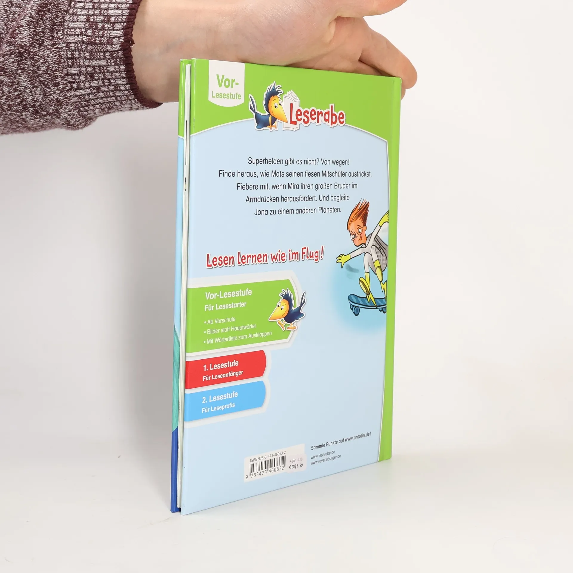 Lesen lernen wie im Flug! Superhelden gibt es nicht? Von wegen! Drei spannende Geschichten über große und kleine Superhelden. Hauptwörter werden in diesem Buch durch Bilder ersetzt. Mit praktischer Wörterliste zum Ausklappen. Die Kinderbücher der Reihe Leserabe – Vor-Lesestufe wurden mit Pädagogen entwickelt und ermöglichen Kindern im Vorschulalter und deren Eltern als Leseteam erste gemeinsame Leseerlebnisse. Hauptwörter werden durch Bilder ersetzt, sodass Mädchen und Jungen ab 5 Jahren leicht in den Leseprozess einbezogen werden können. Empfohlen von Stiftung Lesen, gelistet bei Antolin.