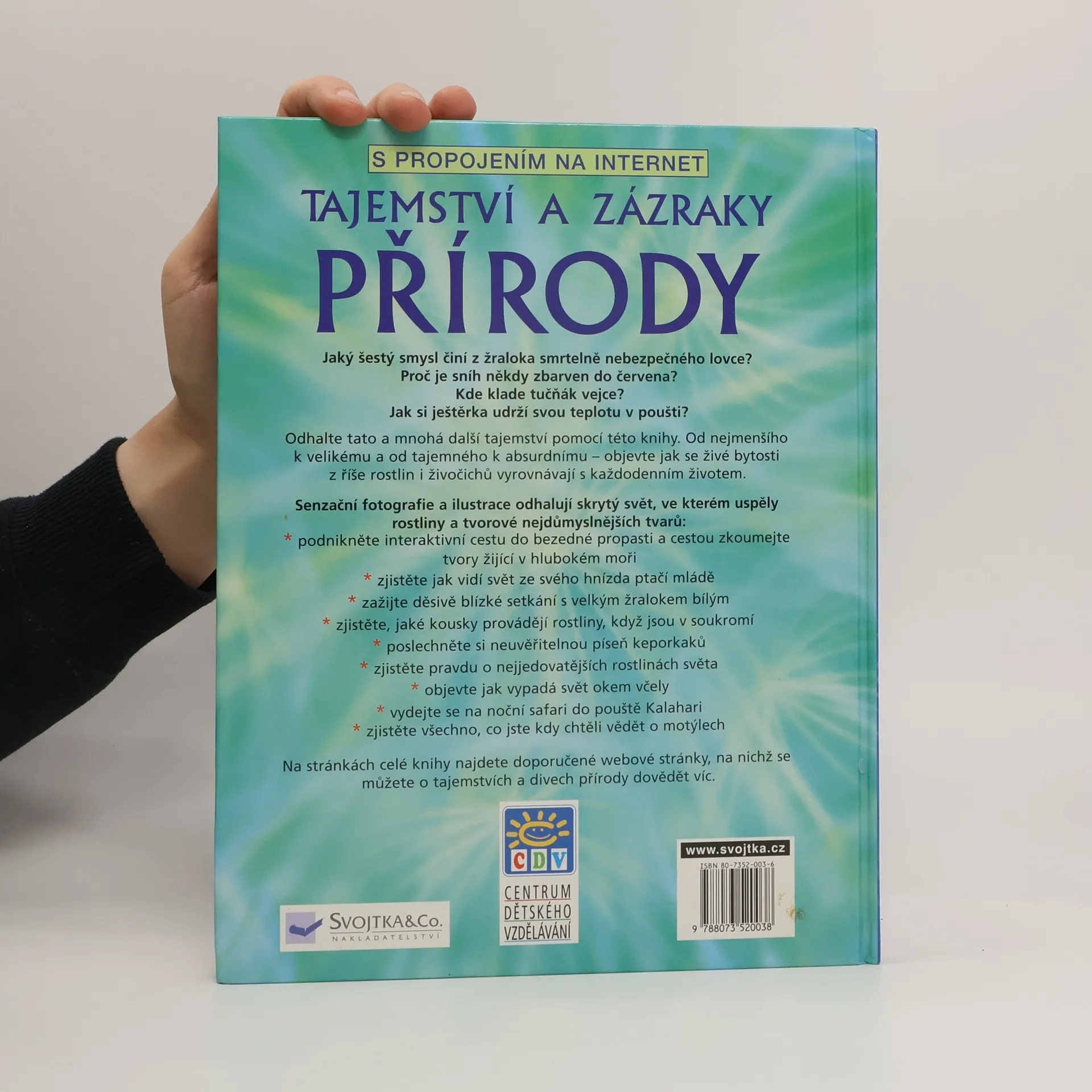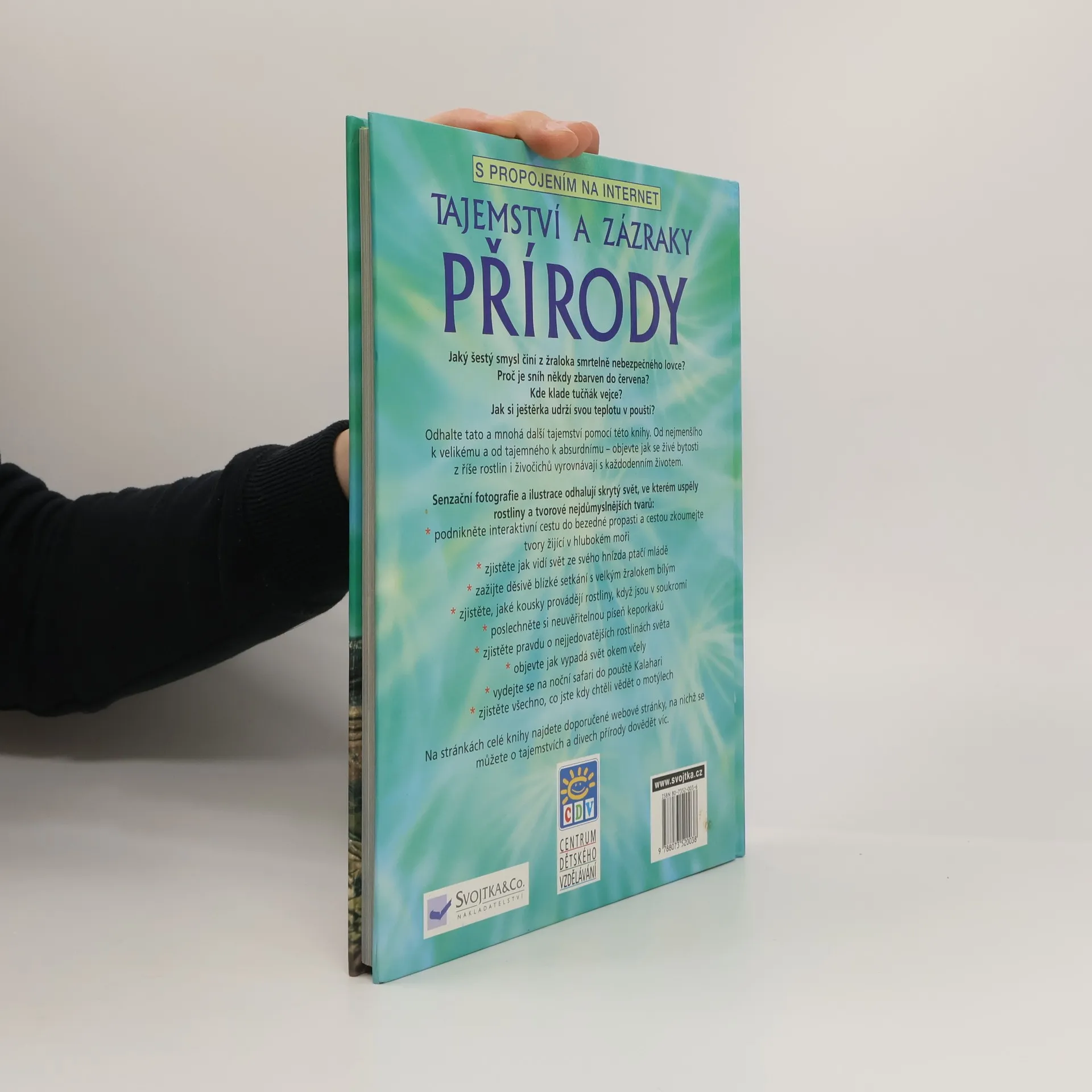 Jaký šestý smysl činí z žraloka smrtelně nebezpečného lovce? Kde klade tučňák vejce? Tato kniha vám odhalí nejen tato, ale mnohá další tajemství přírody. Je doprovázena fotografiemi. Na stránkách celé knihy najdete doporučené webové stránky, na nichž se můžete o tajemstvích a divech přírody dovědět více.