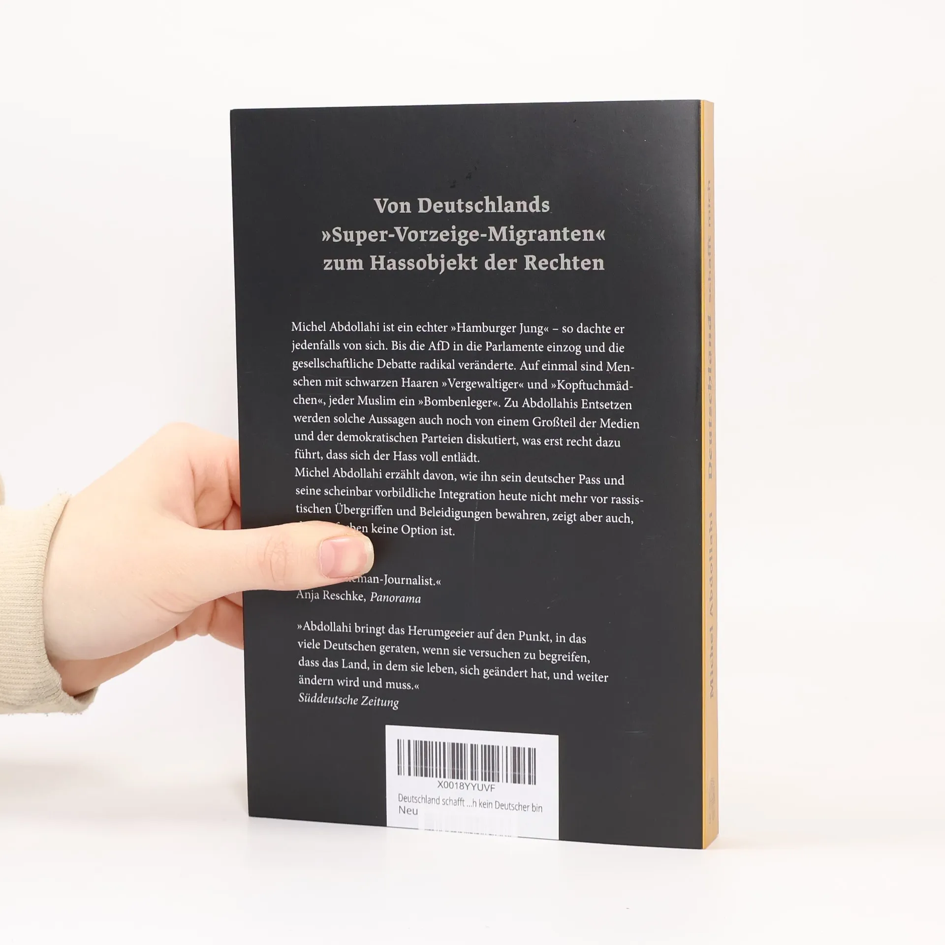 Von Deutschlands „Super-Vorzeige-Migranten“ zum Hassobjekt der Rechten Michel Abdollahi ist ein echter „Hamburger Jung“ – so dachte er jedenfalls von sich. Bis die AfD in die Parlamente einzog und die gesellschaftliche Debatte radikal veränderte. Auf einmal sind Menschen mit schwarzen Haaren „Vergewaltiger“ und „Kopftuchmädchen“, jeder Muslim ein „Bombenleger“. Zu Abdollahis Entsetzen werden solche Aussagen auch noch von einem Großteil der Medien und der demokratischen Parteien diskutiert, was erst recht dazu führt, dass sich der Hass voll entlädt. Michel Abdollahi erzählt davon, wie ihn sein deutscher Pass und seine scheinbar vorbildliche Integration heute nicht mehr vor rassistischen Übergriffen und Beleidigungen bewahren, zeigt aber auch, dass Aufgeben keine Option ist. „Der Gentleman-Journalist“ Anja Reschke, Panorama „Abdollahi bringt das Herumgeeier auf den Punkt, in das viele Deutschen geraten, wenn sie versuchen zu begreifen, dass das Land, in dem sie leben, sich geändert hat, und weiter ändern wird und muss.“ Süddeutsche Zeitung