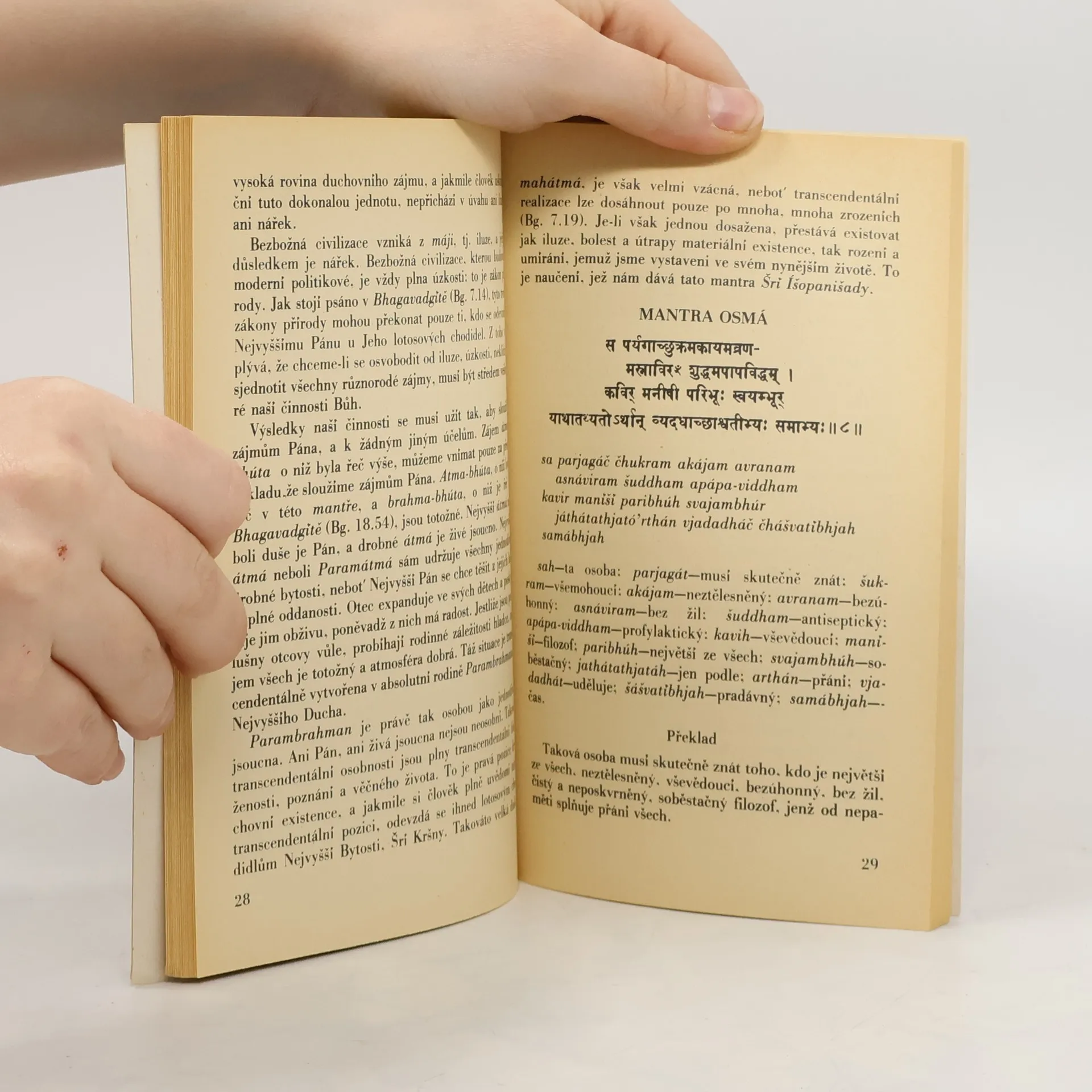 Poznání, jež člověka přivádí blíže k Nejvyšší Osobnosti Božství, Kršnovi. Jedná se o překlad Íšavásja Upanišady ze sanskrtského originálu. Komentářem opatřil A. Č. Bhaktivédánta Swami Prabhupáda.
