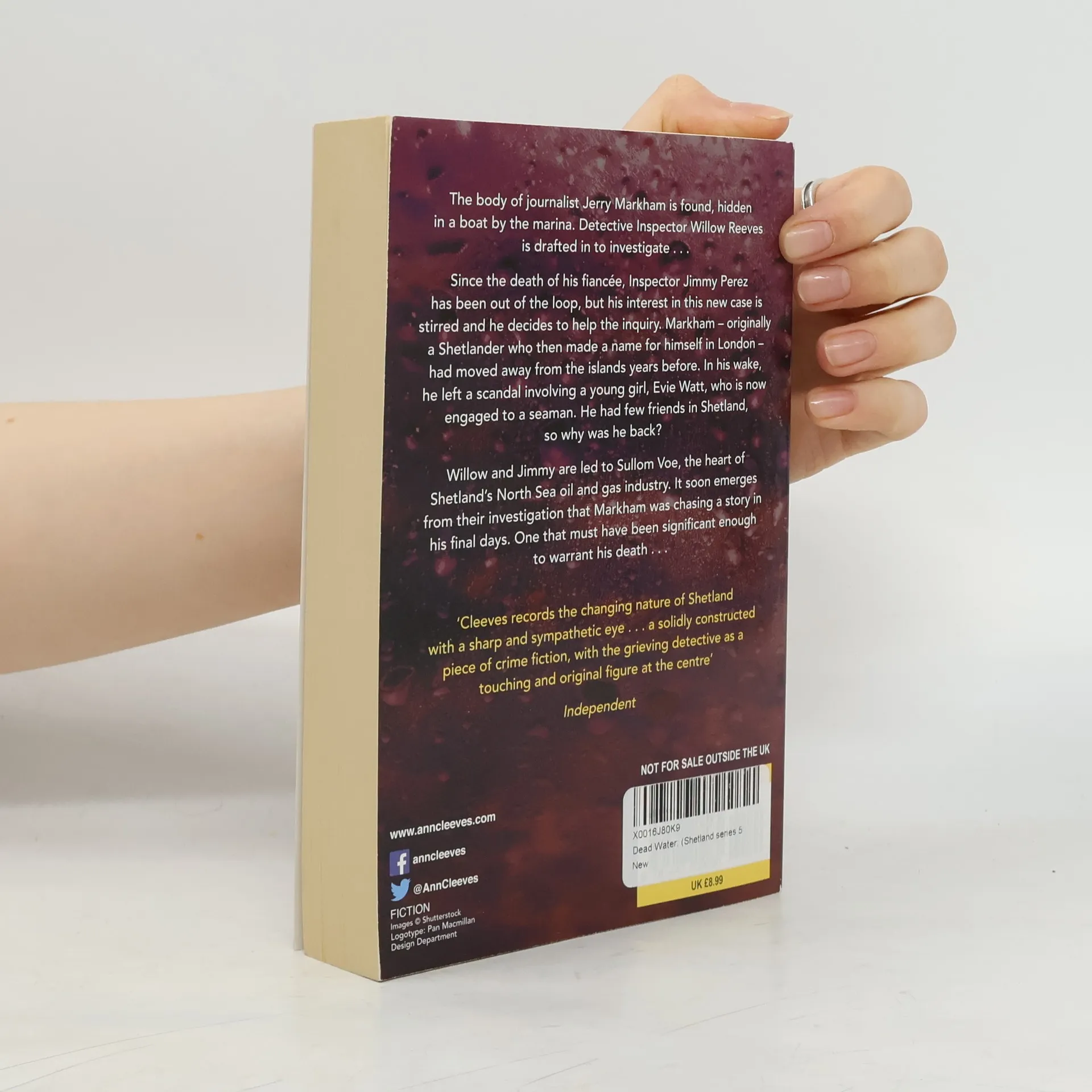 When the body of journalist Jerry Markham is found in a traditional Shetland boat, outside the house of the Fiscal down at the Marina, young Detective Inspector Willow Reeves is drafted in from the Hebrides to head up the investigation.