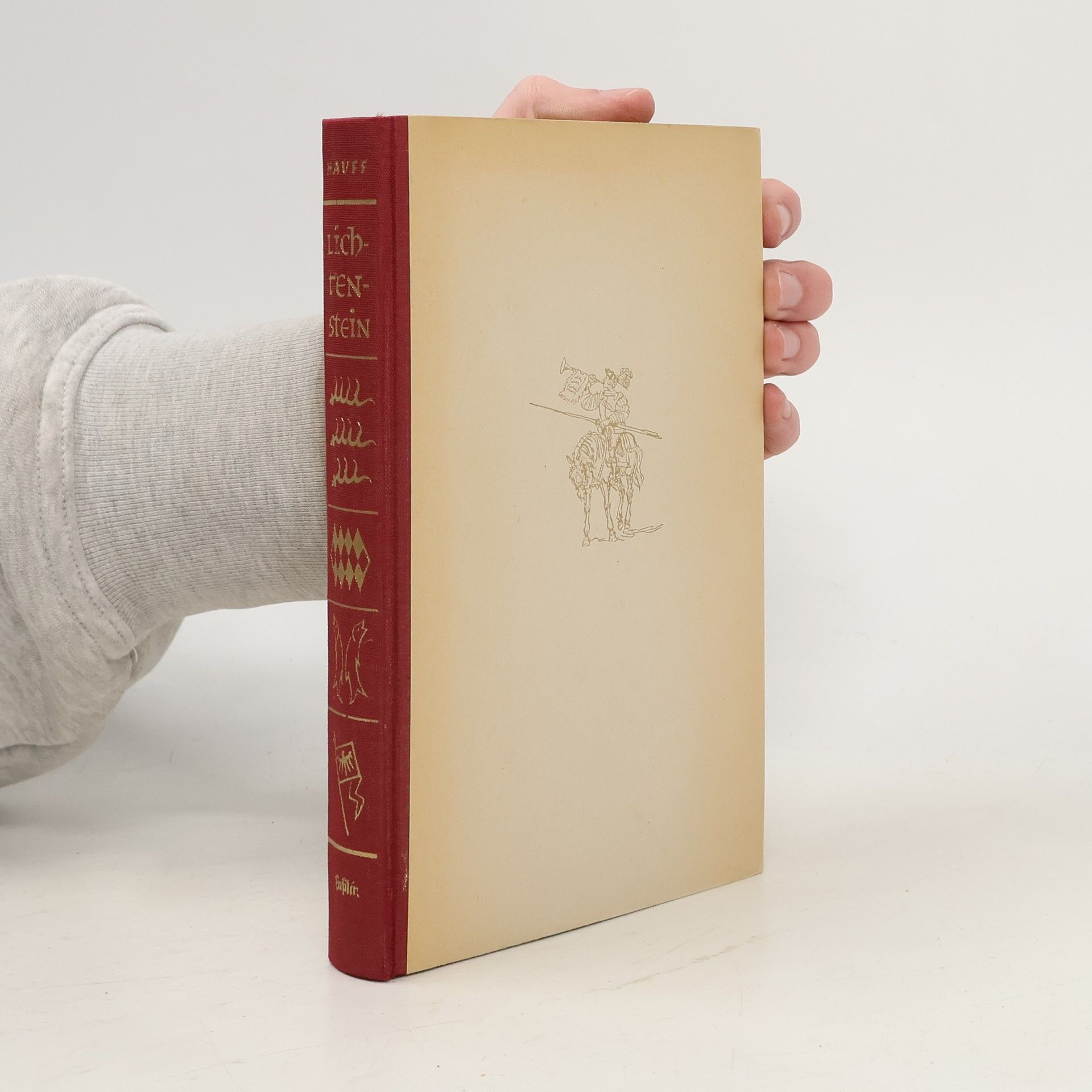 Wilhelm Hauff: Lichtenstein. Romantische Sage aus der wurttembergischen Geschichte Erstdruck: Stuttgart (Franckh) 1826. Buchdeckel mit Prägung sowie mit Bild- und Goldaufdruck, marmorierter Schnitt, mit Frontispiz, sowie schützendes Transparentblatt, Lesebändchen Ausgabe vor 1893