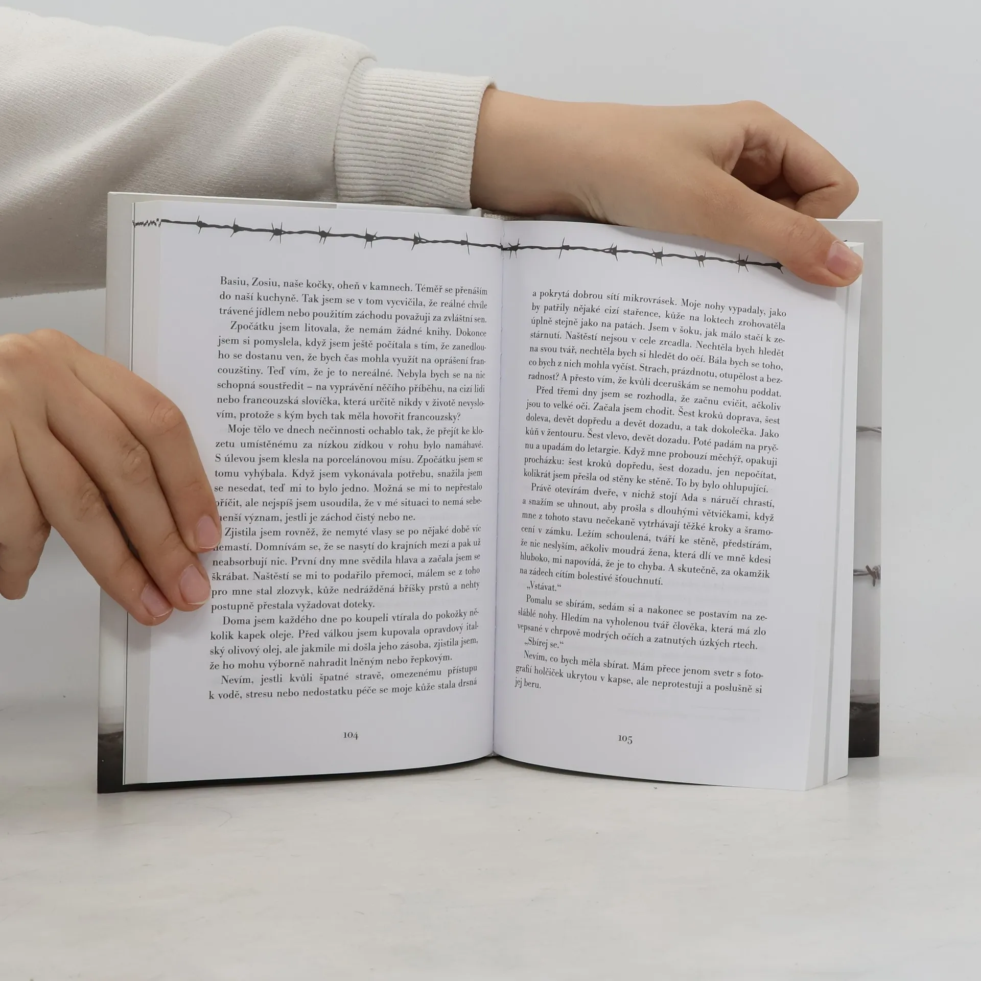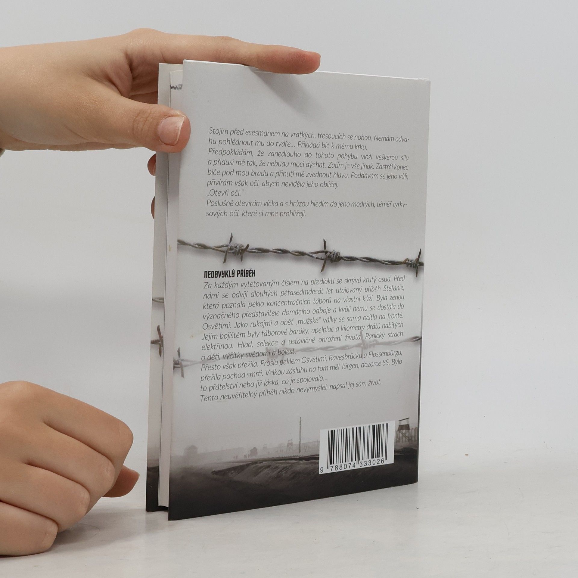 Stojím před esesmanem na vratkých, třesoucích se nohou. Nemám odvahu pohlédnout mu do tváře… Přikládá bič k mému krku. Předpokládám, že zanedlouho do tohoto pohybu vloží veškerou sílu a přidusí mě tak, že nebudu moci dýchat. Za m je vše jinak. Zastrčí konec biče pod mou bradu a přinutil mě zvednout hlavu. Poddávám se jeho vůli, přivírám však oči, abych neviděla jeho obličej. „Otevři oči.“ Poslušně otevírám víčka a s hrůzou hledím do jeho modrých, téměř tyrkysových očí, které si mne prohlížejí. NEOBVYKLÝ PŘÍBĚH Za každým vytetovaným číslem na předloktí se skrývá krutý osud. Před námi se odvíjí dlouhých pětasedmdesát let utajovaný příběh Stefanie, která poznala peklo koncentračních táborů na vlastní kůži. Byla ženou význačného představitele domácího odboje a kvůli němu se dostala do Osvětimi. Jako rukojmí a oběť „mužské“ války se sama ocitla na frontě. Jejím bojištěm byly táborové baráky, apelplac a kilometry drátů nabitých elektřinou. Hlad, selekce a ustavičné ohrožení života. Panický strach o děti, výčitky svědomí a bolest. Přesto však přežila. Prošla peklem Osvětimi, Ravesbrücku a Flossenbürgu, přežila pochod smrti. Velkou zásluhu na tom měl Jürgen, dozorce SS. Bylo to přátelství nebo již láska, co je spojovalo… Tento neuvěřitelný příběh nikdo nevymyslel, napsal jej sám život.