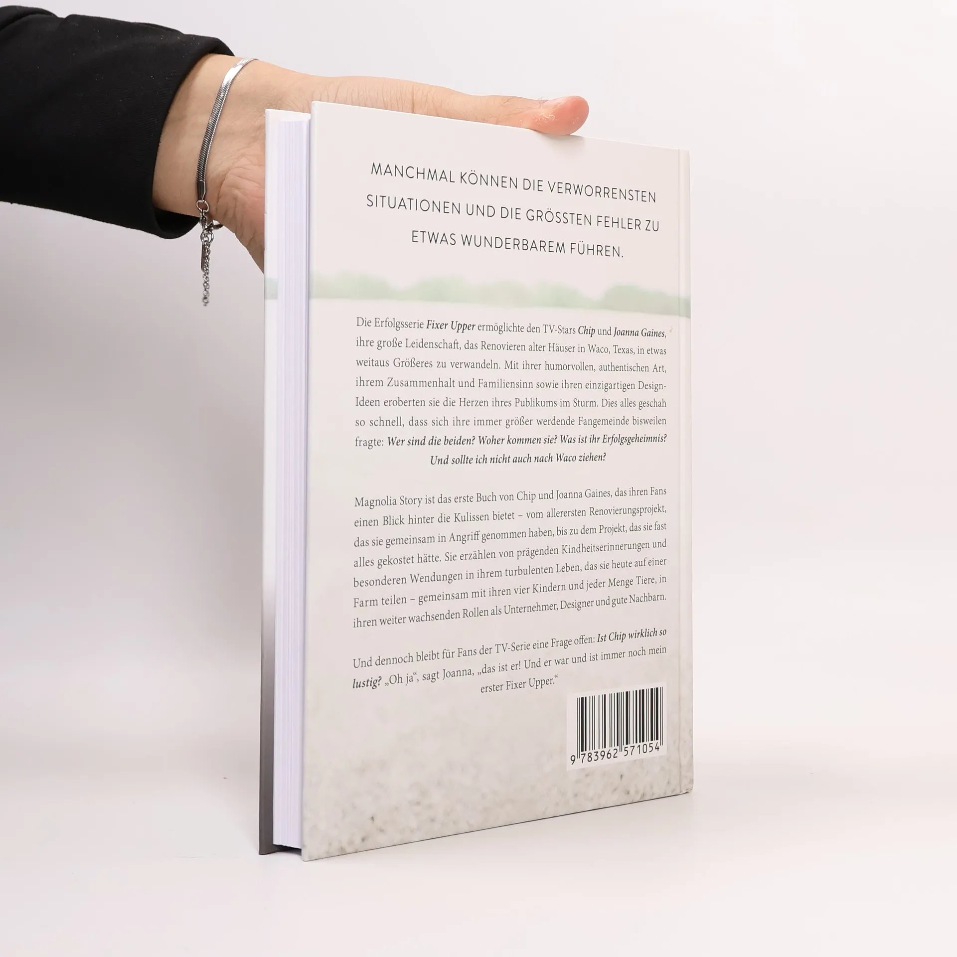 Manchmal können die verworrensten Situationen und die größten Fehler zu etwas Wunderbarem führen. Die Erfolgsserie Fixer Upper ermöglichte den TV-Stars Chip und Joanna Gaines, ihre große Leidenschaft, das Renovieren alter Häuser in Waco, Texas, in etwas weitaus Größeres zu verwandeln. Mit ihrer humorvollen, authentischen Art, ihrem Zusammenhalt und Familiensinn sowie ihren einzigartigen Design-Ideen eroberten sie die Herzen ihres Publikums im Sturm. Dies alles geschah so schnell, dass sich ihre immer größer werdende Fangemeinde bisweilen fragte: Wer sind die beiden? Woher kommen sie? Was ist ihr Erfolgsgeheimnis? Und sollte ich nicht auch nach Waco ziehen? Magnolia Story ist das erste Buch von Chip und Joanna Gaines, das ihren Fans einen Blick hinter die Kulissen bietet - vom allerersten Renovierungsprojekt, das sie gemeinsam in Angriff genommen haben bis zu dem Projekt, das sie fast alles gekostet hätte. Sie erzählen von prägenden Kindheitserinnerungen und besonderen Wendungen in ihrem turbulenten Leben, das sie heute auf einer Farm teilen – gemeinsam mit ihren vier Kindern und jeder Menge Tiere, in ihren weiter wachsenden Rollen als Unternehmer, Designer und gute Nachbarn. Und dennoch bleibt für Fans der TV-Serie eine Frage offen: Ist Chip wirklich so lustig? „Oh ja“, sagt Joanna, „das ist er! Und er war und ist immer noch mein erster Fixer Upper.“