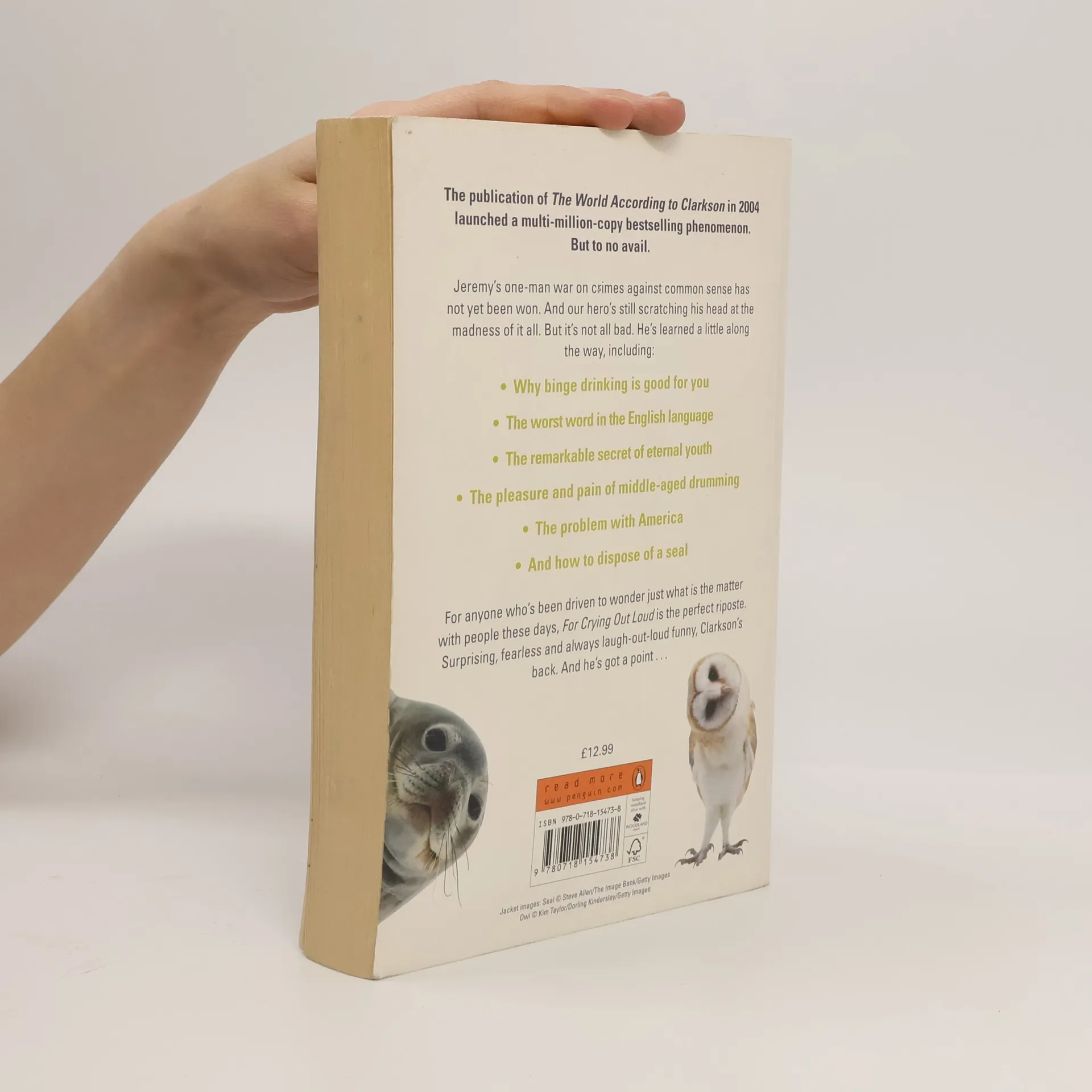 The publication of The World According to Clarksonin 2004 launched a multi-million-copy bestselling phenomenon. But to no avail. Jeremy's one-man war on crimes against common sense has not yet been won. And our hero's still scratching his head at the madness of it all. But it's not all bad. He's learned a little along the way, including- Why binge drinking is good for you The worst word in the English language The remarkabe secret of eternal youth The pleasure and pain of middle-aged drumming The problem with America And how to dispose of a seal For anyone who's been driven to wonder just what is the matter with people these days, For Crying Out Loudis the perfect riposte. Surprising, fearless and always laugh-out-loud funny, Clarkson's back. And he's got a point. . .