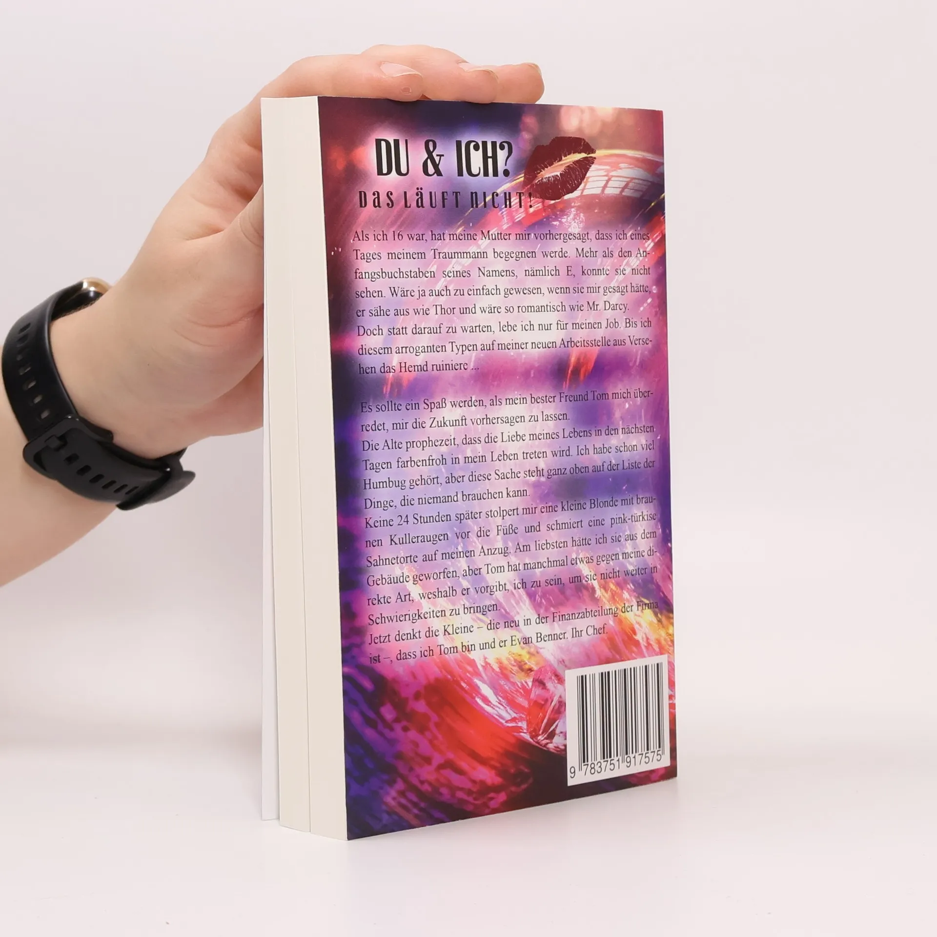 Als ich 16 war, hat meine Mutter mir vorhergesagt, dass ich eines Tages meinem Traummann begegnen werde. Mehr als den Anfangsbuchstaben seines Namens, nämlich E, konnte sie nicht sehen. Wäre ja auch zu einfach gewesen, wenn sie mir gesagt hätte, er sähe aus wie Thor und wäre so romantisch wie Mr. Darcy. Doch statt darauf zu warten, lebe ich nur für meinen Job. Bis ich diesem arroganten Typen auf meiner neuen Arbeitsstelle aus Versehen das Hemd ruiniere ... Es sollte ein Spaß werden, als mein bester Freund Tom mich überredet, mir die Zukunft vorhersagen zu lassen. Die Alte prophezeit, dass die Liebe meines Lebens in den nächsten Tagen farbenfroh in mein Leben treten wird. Ich habe schon viel Humbug gehört, aber diese Sache steht ganz oben auf der Liste der Dinge, die niemand brauchen kann. Keine 24 Stunden später stolpert mir eine kleine Blonde mit braunen Kulleraugen vor die Füße und schmiert eine pink-türkise Sahnetorte auf meinen Anzug. Am liebsten hätte ich sie aus dem Gebäude geworfen, aber Tom hat manchmal etwas gegen meine direkte Art, weshalb er vorgibt, ich zu sein, um sie nicht weiter in Schwierigkeiten zu bringen. Jetzt denkt die Kleine - die neu in der Finanzabteilung der Firma ist -, dass ich Tom bin und er Evan Benner. Ihr Chef.
