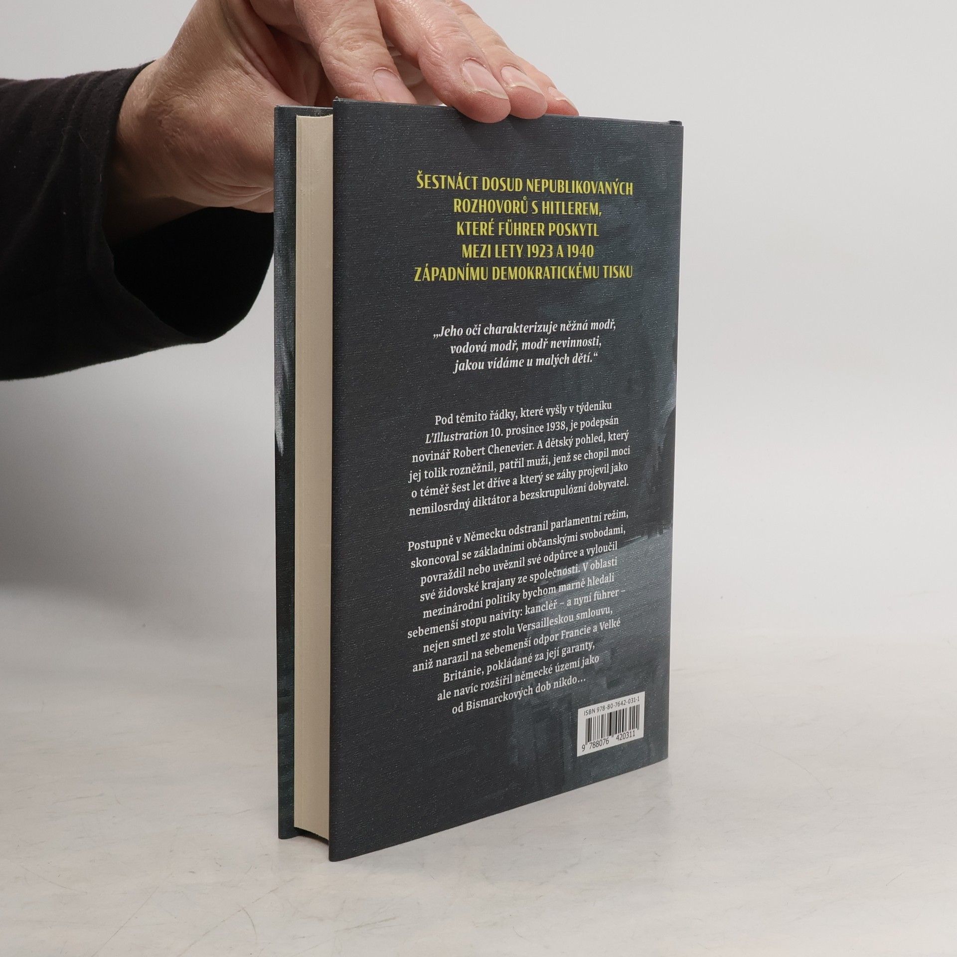 Od svého vstupu do politiky v roce 1923 do porážky Francie roku 1940 Hitler využíval demokratický tisk, jako to nedělal žádný diktátor před ním. Poskytoval pečlivě vybraným novinářům rozhovory, v nichž doplňoval a korigoval své četné projevy s cílem zakrýt své skutečné záměry i nemilosrdný způsob jejich uskutečňování. Navzdory stovkám tisíců stránek věnovaných führerovi v uplynulých sedmdesáti letech nebyla tato interview nikdy publikována. Éric Branca vybral šestnáct nejpříznačnějších, jež editoval a opatřil poznámkami. Je rovněž autorem úvodní kapitoly s názvem „Hitler a zahraniční tisk. Čím ho fascinoval.“, jež vypovídá mnoho o führerovu vlivu na veřejné mínění západních demokracií. Kniha je psána živým a čtivým jazykem, doplněna životopisnými medailonky novinářů, kteří tyto rozhovory vedli, a chronologickým přehledem.