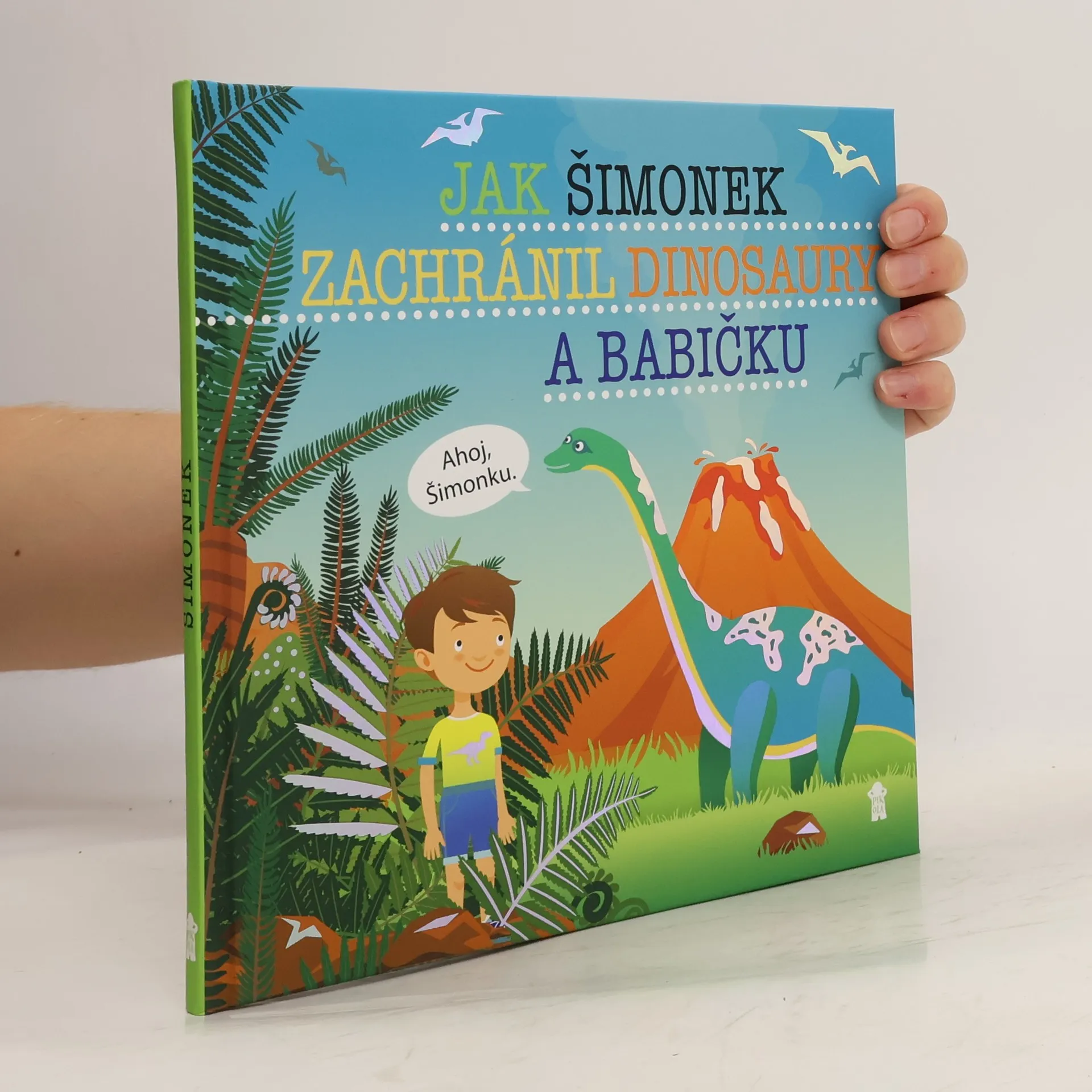 Váš chlapeček hlavním hrdinou poutavé knihy! Darujte nadšení a radost ze společného čtení dobrodružného příběhu statečného Šimonka. Při hře na schovávanou se svou babičkou se tento malý, ale velice odvážný kluk dostane do pravěku a zažije tam neuvěřitelná dobrodružství. Průvodcem mu je babiččin ochočený kohout, který mu daruje kouzelné pírko. V pravěku se oba skamarádí s různými dinosaury a díky kouzelnému pírku se jim podaří vyřešit mnoho problémů. Chlapec se postupně ocitne v roli hasiče, popeláře či policisty. Díky tomu zachrání nejen dinosauří svět, ale nakonec i svou babičku!