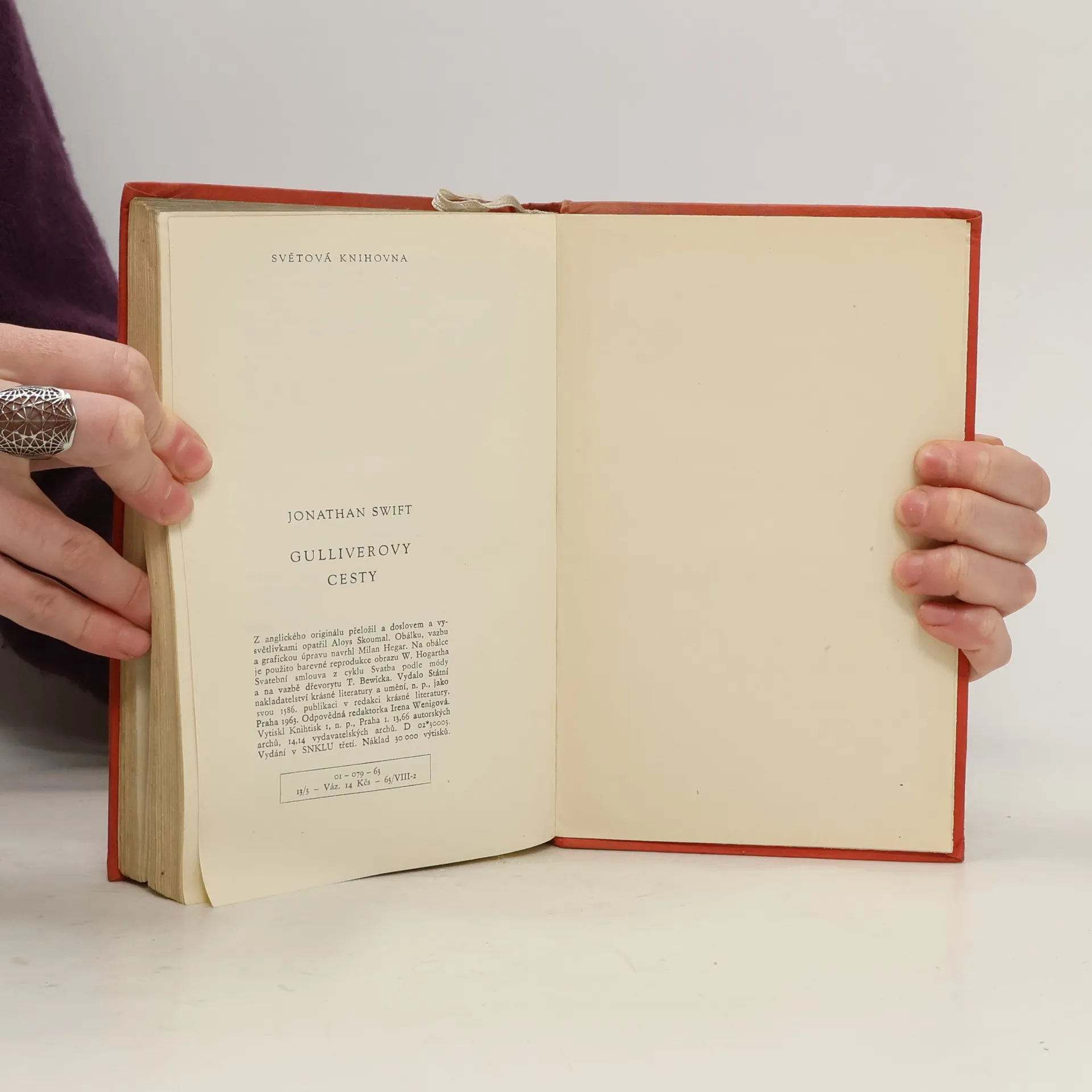 Slavná anglická satira je zprávou lodního ranhojiče a pozdějšího kapitána Lemuela Gullivera o zemích, které na svých cestách navštívil a kde nikdy předtím a ani potom nestanula noha Evropana. Čtenář se dozví o zemi prťavých Liliputů, obrů z Brobdingnagu, navštíví létající ostrov, potká se s nesmrtelnými strulgbrugy a seznámí se s moudrým národem Hvajninimů – inteligentních koní. obálka Hegar, Milan typo / úprava: Hegar, Milan edice: Světová knihovna 3. vydání v SNKLU