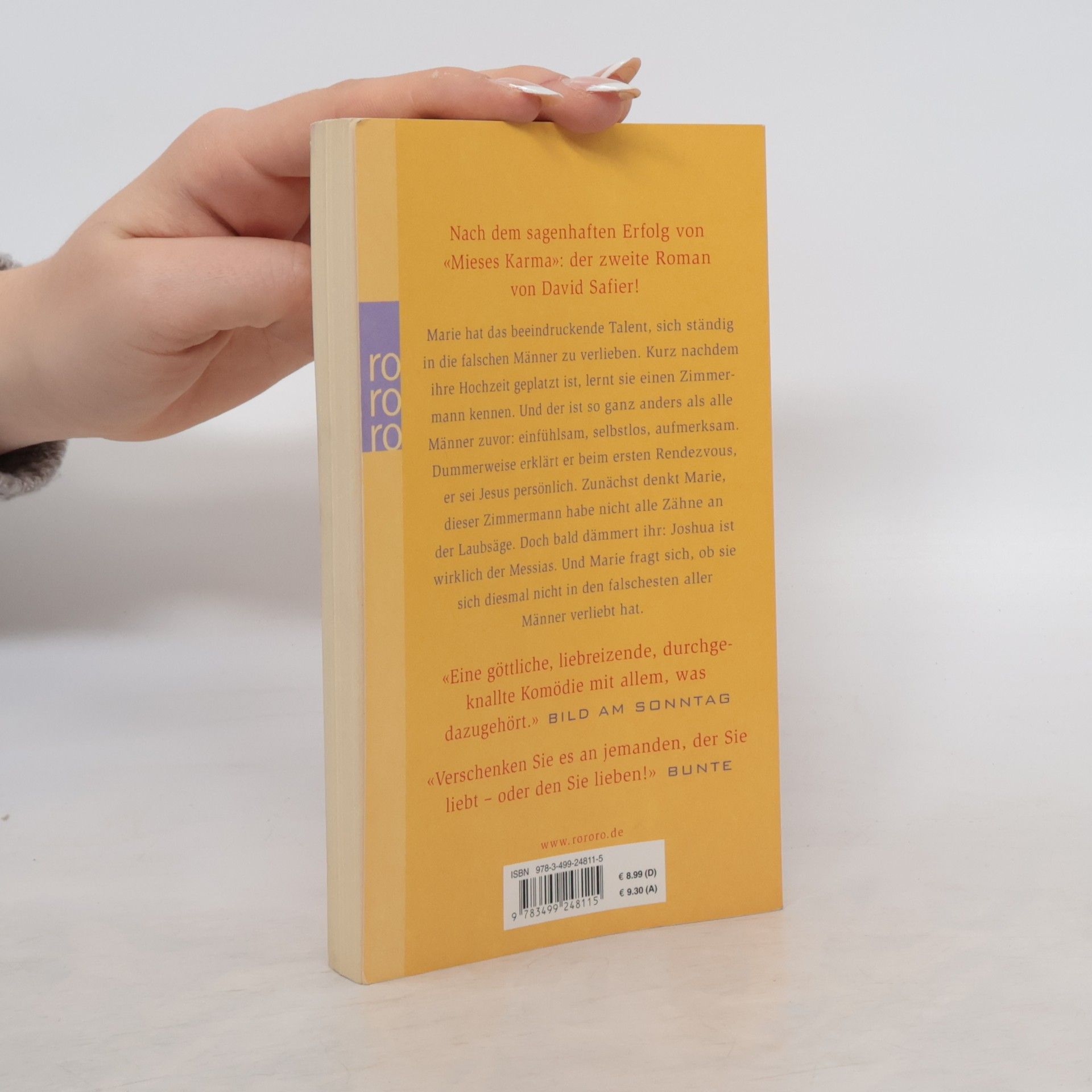 Nach dem sagenhaften Erfolg von «Mieses Karma»: Der zweite Roman von David Safier! Marie hat das beeindruckende Talent, sich ständig in die falschen Männer zu verlieben. Kurz nachdem ihre Hochzeit geplatzt ist, lernt sie einen Zimmermann kennen. Und der ist so ganz anders als alle Männer zuvor: einfühlsam, selbstlos, aufmerksam. Dummerweise erklärt er beim ersten Rendezvous, er sei Jesus persönlich. Zunächst denkt Marie, dieser Zimmermann habe nicht alle Zähne an der Laubsäge. Doch bald dämmert ihr: Joshua ist wirklich der Messias. Und Marie fragt sich, ob sie sich diesmal nicht in den falschesten aller Männer verliebt hat. «Verschenken Sie es an jemanden, der Sie liebt – oder den Sie lieben!» (Bunte)