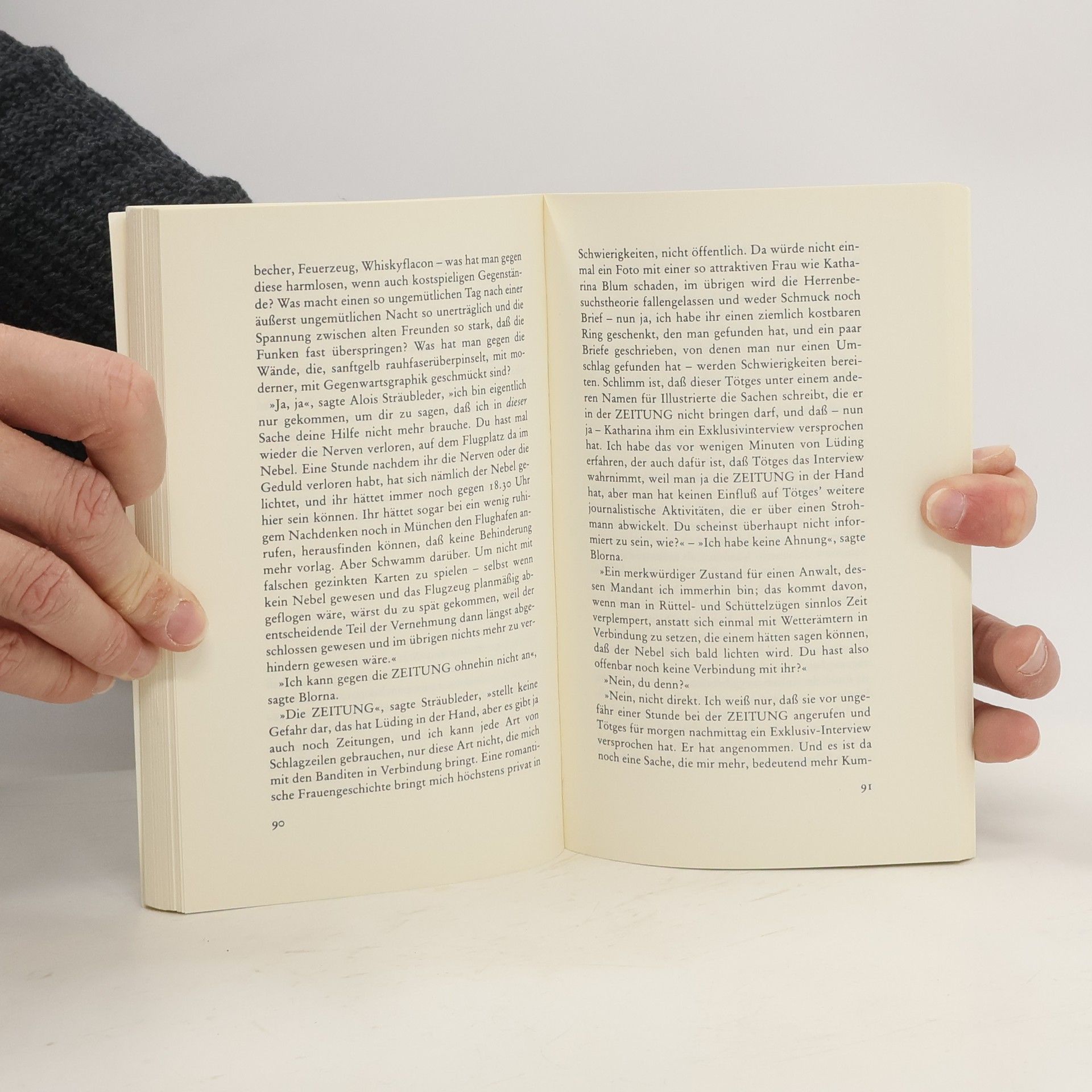 »Ähnlichkeiten mit den Praktiken der ›Bild‹-Zeitung [...] sind weder beabsichtigt noch zufällig, sondern unvermeidlich.« Aus dem Vorwort Bölls Katharina Blum ist eine junge hübsche Haushälterin, die sich eine kleine Eigentumswohnung und einen Volkswagen leisten kann. Sie hat ein heiter-bescheidenes Wesen und wird, weil sie Zudringlichkeiten der Männer verabscheut, in ihrer Umgebung die »Nonne« genannt. Diese Frau verliebt sich spontan in einen jungen Mann, einen von der Polizei gesuchten radikalen Rechtsbrecher. Sie verhilft ihm zur Flucht und gerät in den Mittelpunkt der Sensationsmache einer großen Boulevardzeitung. Die Situation eskaliert, als der Journalist Werner Tötges in ihre Wohnung kommt ...