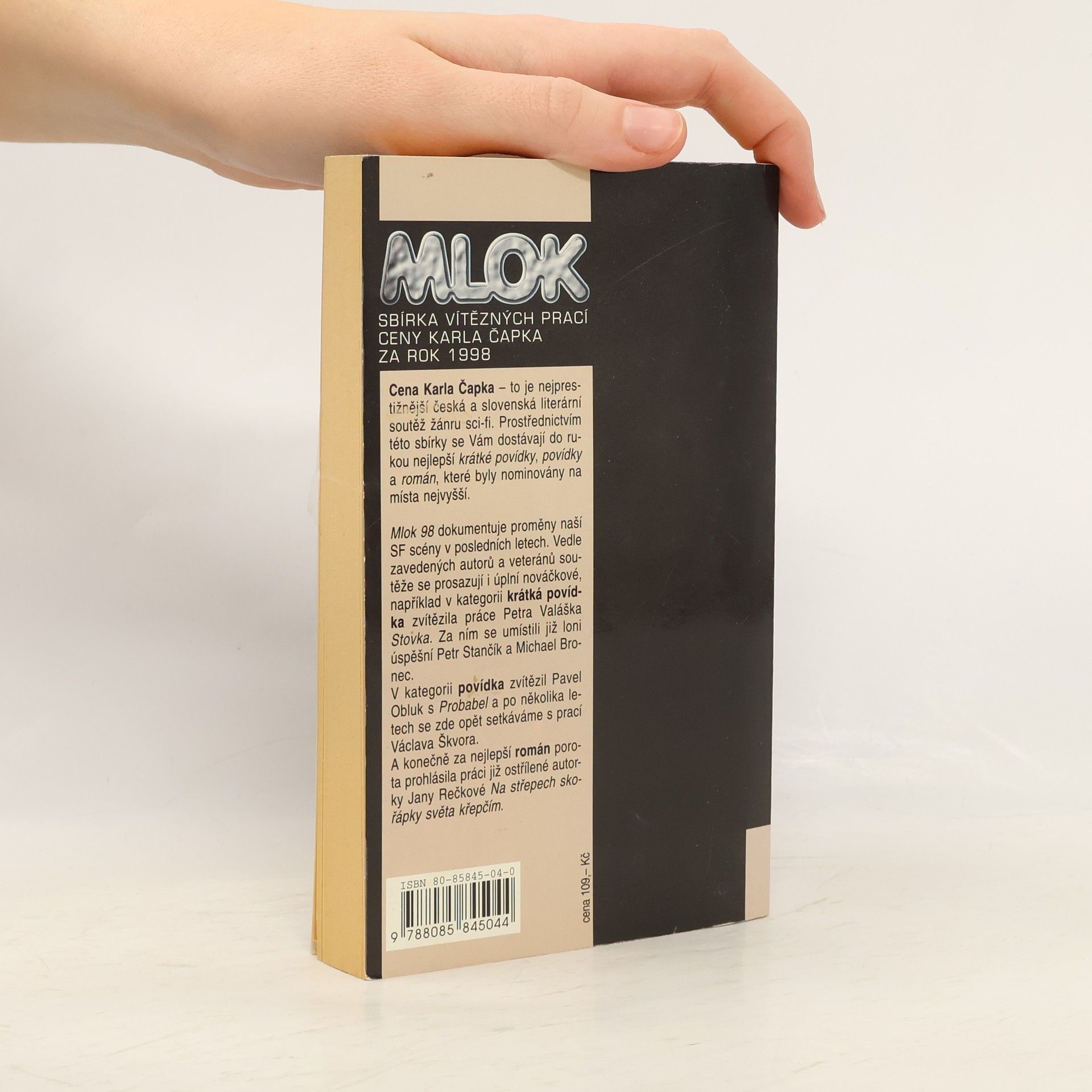 Mlok 98 dokumentuje proměny naší SF scény v posledních letech. Vedle zavedených autorů a veteránů soutěže se prosazují i úplní nováčkové, například v kategorii krátká povídka zvítězila práce Petra Valáška Stovka. Za ním se umístili již loni úspěšní Petr Stančík a Michael Bronec. V kategorii povídka zvítězil Pavel Obluk s Probabel a po několika letech se zde opět setkáváme s prací Václava Škvora. A konečně za nejlepší román porota prohlásila práci již ostřílené autorky Jany Rečkové Na střepech skořápky světa křepčím. Cena Karla Čapka – to je nejprestižnější česká a slovenská literární soutěž žánru sci-fi. Prostřednictvím této sbírky se Vám dostávají do rukou nejlepší krátké povídky, povídky a román, které byly nominovány na místa nejvyšší.... celý text