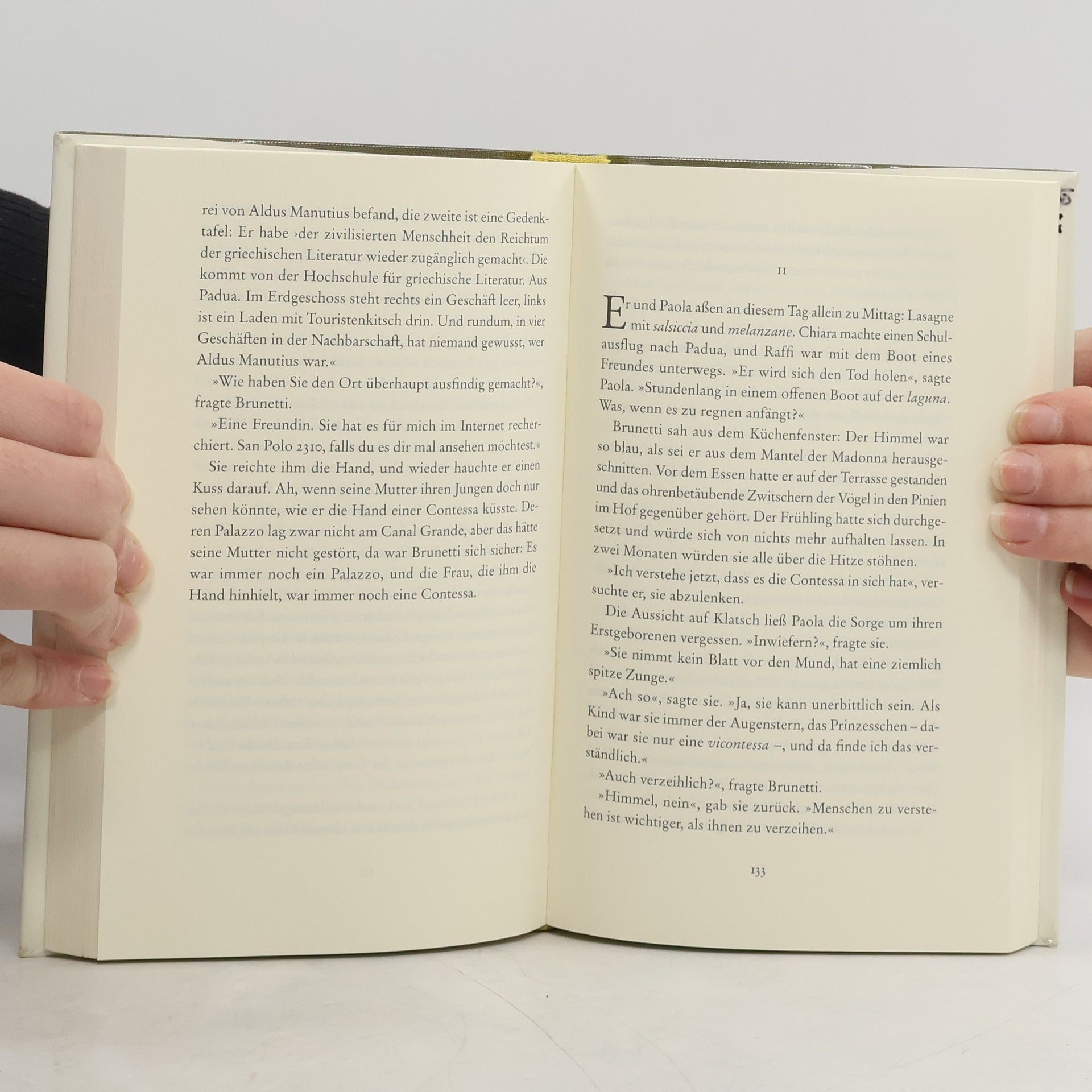 Brunetti auf der Jagd nach Raritäten: Der Commissario wird zu einem ungewöhnlichen Tatort gerufen, der altehrwürdigen Biblioteca Merula. Wertvolle Folianten liegen aufgeschlitzt da, und der amerikanische Forscher, der ein Dauergast war, ist verschwunden. In Venedig, das einst auch eine florierende Bücherstadt war, entdeckt Brunetti eine eigenartige Welt: einen florierenden Schwarzmarkt für Bücher.