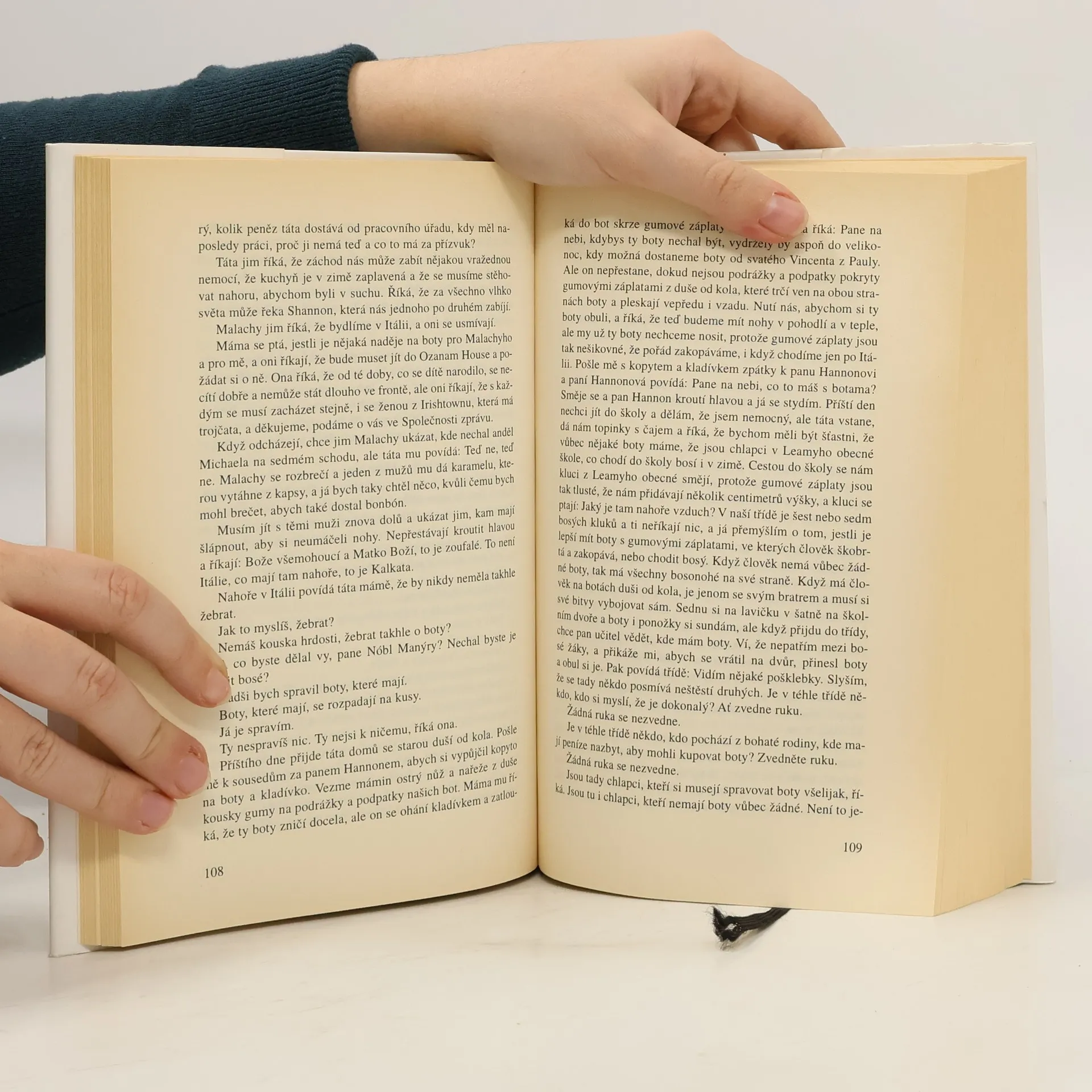 Autobiografické vyznání, vzpomínky stárnoucího muže na dětství a mládí, které prožíval v třicátých a čtyřicátých letech v Irsku. Zpráva o neuvěřitelně strádajícím, ale sounáležitém a často komickém životě irské rodiny vypovídá nejen o životních zvratech a stereotypech, ale také o dobové atmosféře této éry dvacátého století. Tragikomické autobiografické vyznání je působivým dokladem ryzího irského naturelu, sepsané s hlubokým citem a velikým stylistickým uměním.