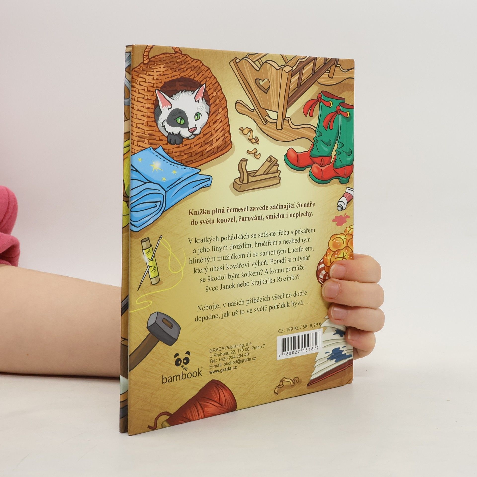 Knížka plná řemesel zavede začínající čtenáře do světa kouzel, čarování, smíchu i neplechy. V krátkých pohádkách se setkáte třeba s pekařem a jeho líným droždím, hrnčířem a nezbedným hliněným mužíčkem či se samotným Luciferem, který uhasí kovářovi výheň. Poradí si mlynář se škodolibým šotkem? A komu pomůže švec Janek nebo krajkářka Rozinka? Nebojte, v našich příbězích všechno dobře dopadne, jak už to ve světě pohádek bývá…