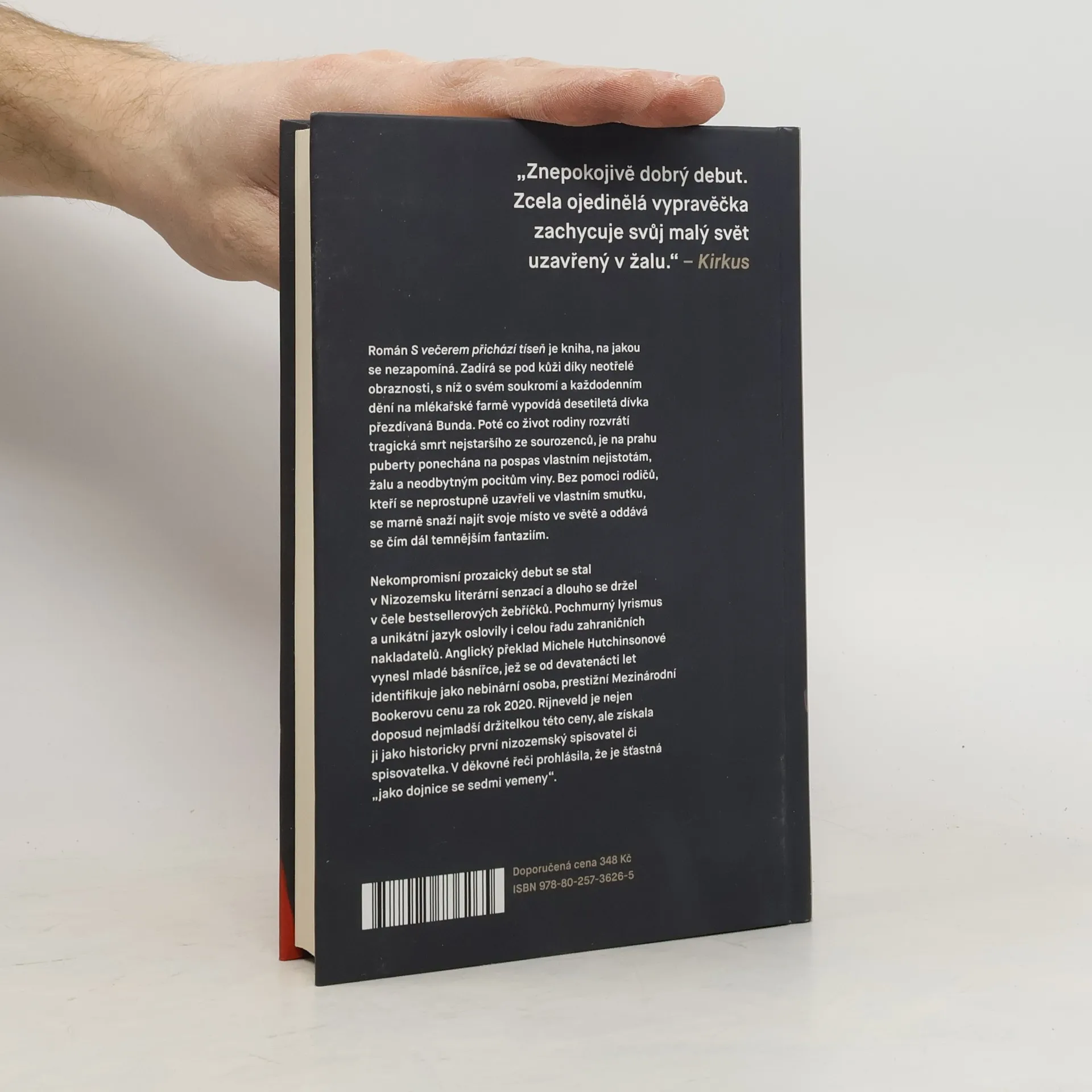 Desetiletá Bunda žije se svou silně nábožensky založenou rodinou na farmě na nizozemském venkově. Jednou krátce před Vánoci se její starší bratr vypraví bruslit do zakázaných míst a ji nechá doma. Uražená, že ji nevzal s sebou, se obrátí k Bohu s rouhačskou prosbou. A i když by ji pak stokrát chtěla vzít zpět, je příliš pozdě: bratra jí to nevrátí. Jeho tragická smrt, o níž se nesmí mluvit, rozvrátí život celé rodiny. Dívka na prahu dospívání ponechaná napospas vlastním pocitům viny se oddává čím dál nebezpečnějším fantaziím. Nekompromisní prozaický debut mladé básnířky Marieke Lucas Rijneveld se hned po vydání stal v Nizozemsku literární senzací a dlouho se držel v čele bestsellerových žebříčků. Temný lyrismus a unikátní jazyk oslovily i řadu zahraničních nakladatelů. A anglický překlad The Discomfort of Evening Rijneveldové vynesl i prestižní Mezinárodní Bookerovu cenu za rok 2020. Získala ji jako historicky první nizozemský autor. Odvážný a nekompromisní román, jakých je soudobé světové literatuře stále málo. Svým temným lyrismem a ojedinělou obrazností uchvátil nejen domácí nizozemské publikum a zcela zaslouženě vynesl mladé básnířce prestižní Mezinárodní Bookerovu cenu za rok 2020.