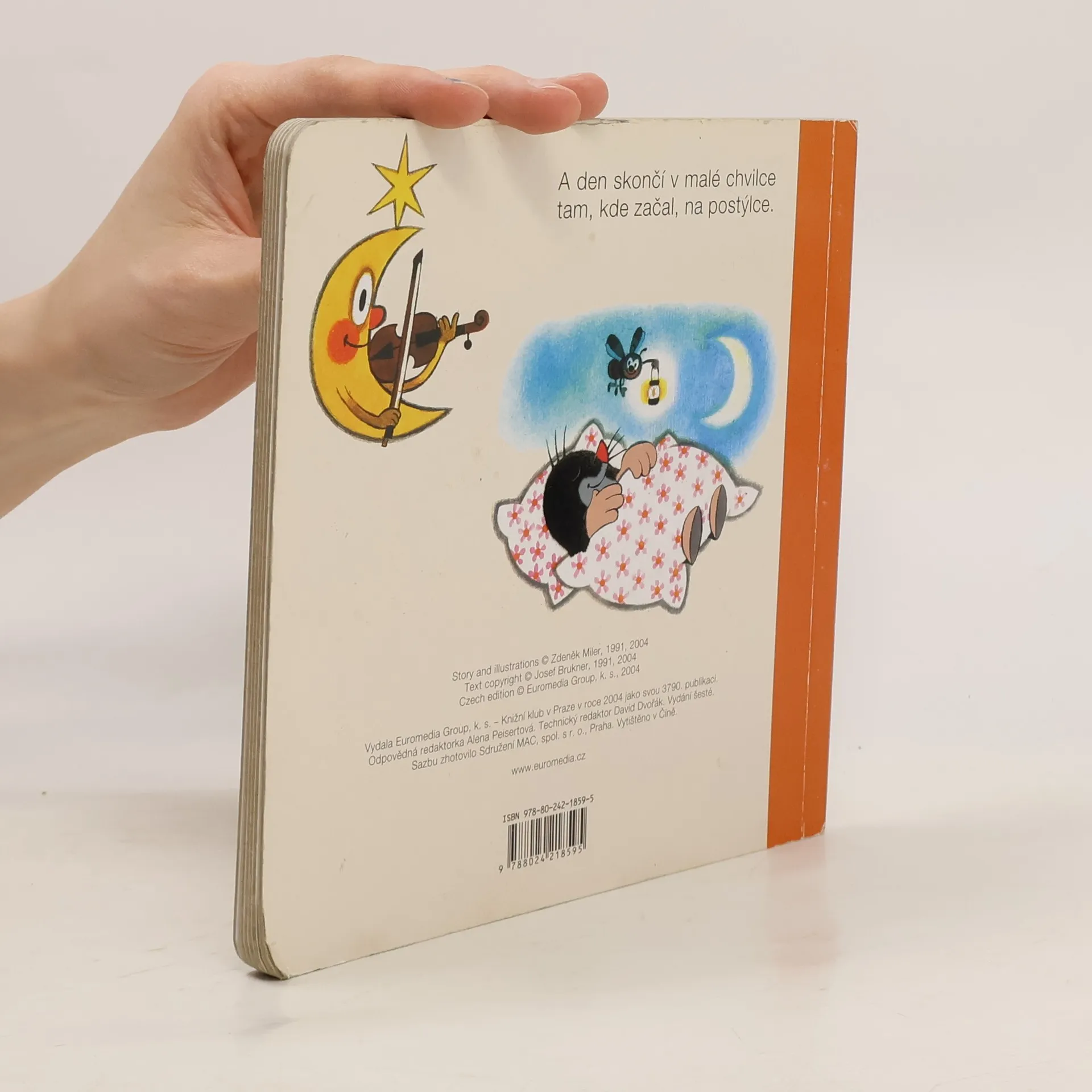 Krtka probudilo sluníčko. Bude pěkný den, a tak ho stráví na zahradě. Posnídá mrkvičku a do práce. Čekají na něj sladké jahůdky. Po dobrém obědě si odpočine, vykoupe se v rybníčku a večer znovu do postýlky. Klasické dvanáctistránkové leporelo pro nejmenší. Ilustrace Zdeňka Milera provázejí půvabné verše Josefa Bruknera