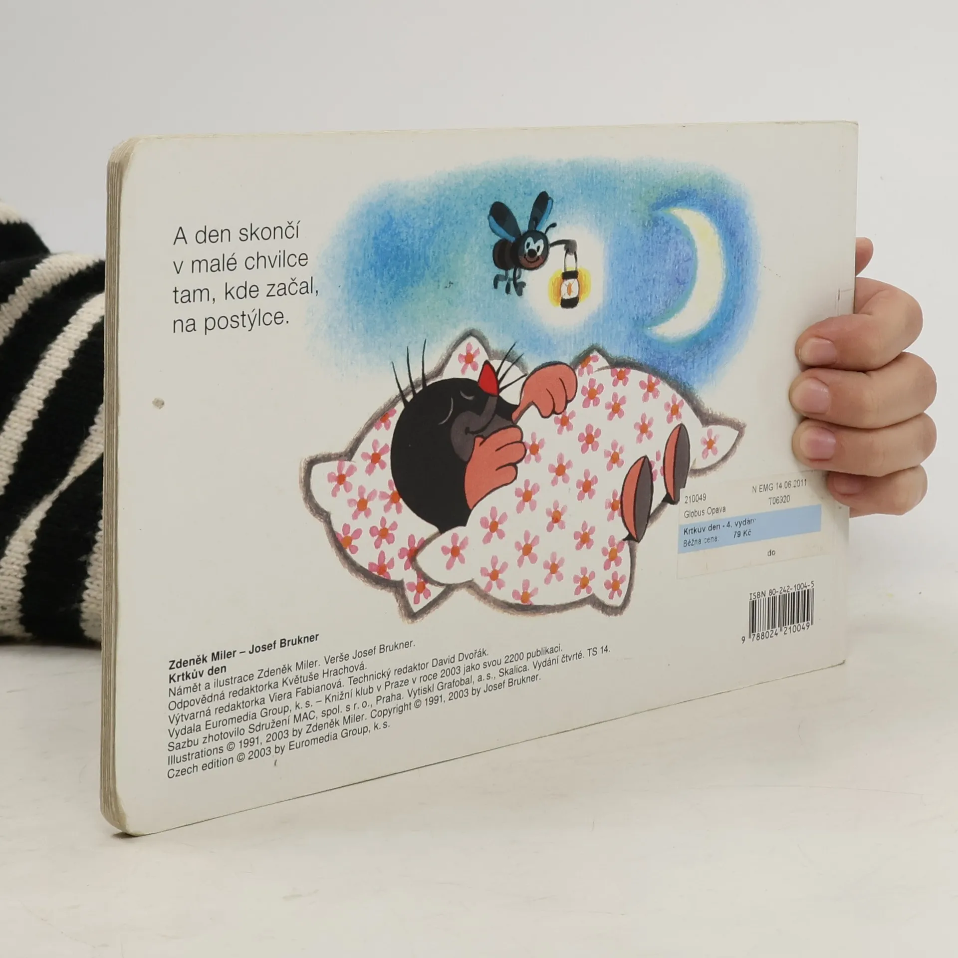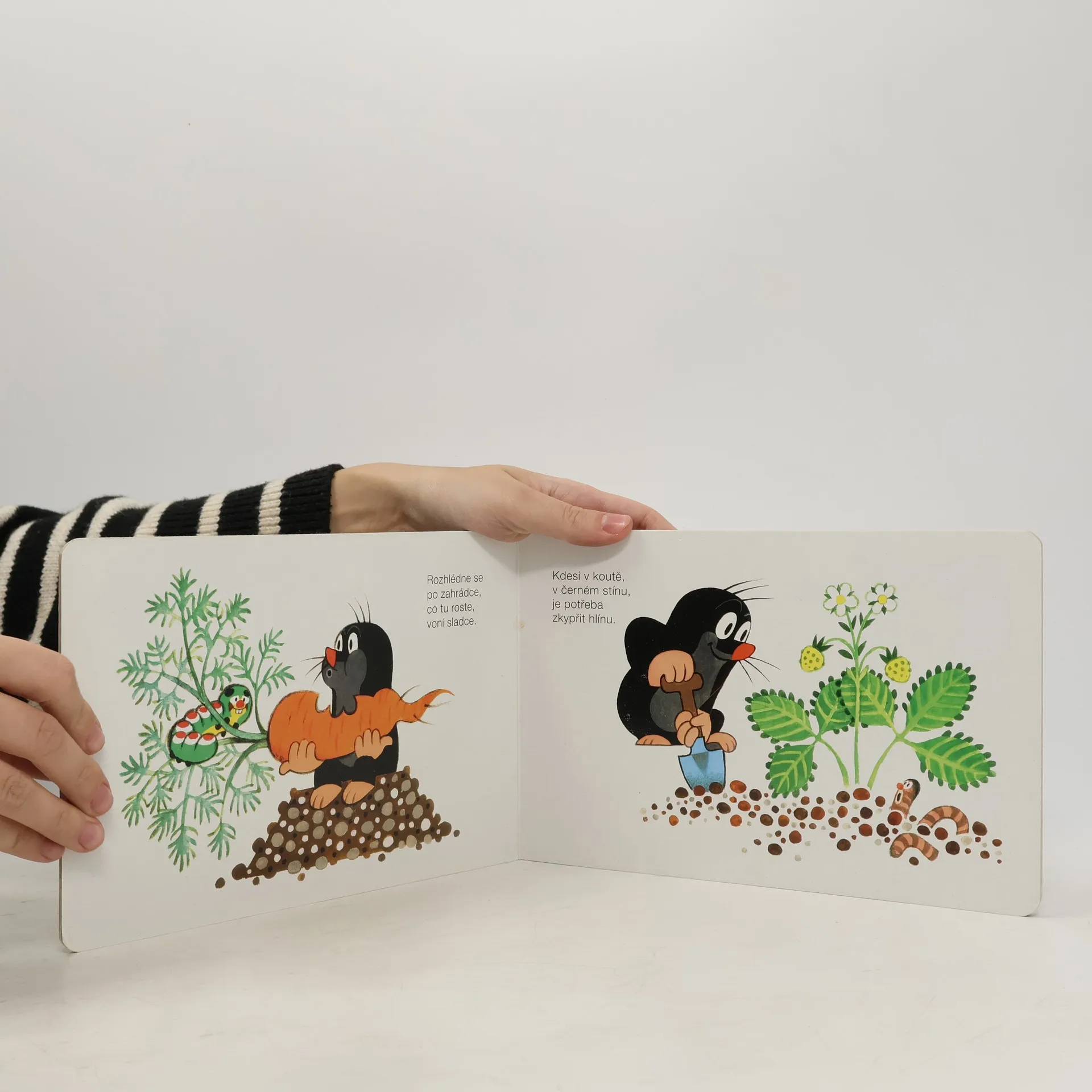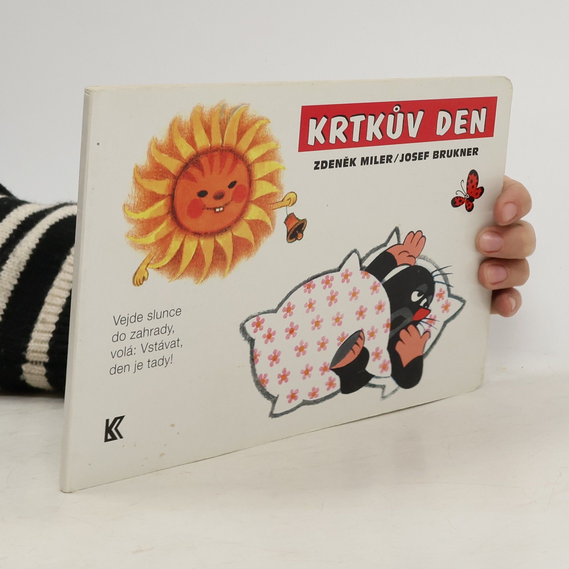 Krtka probudilo sluníčko. Bude pěkný den, a tak ho stráví na zahradě. Posnídá mrkvičku a do práce. Čekají na něj sladké jahůdky. Po dobrém obědě si odpočine, vykoupe se v rybníčku a večer znovu do postýlky. Klasické dvanáctistránkové leporelo pro nejmenší. Ilustrace Zdeňka Milera provázejí půvabné verše Josefa Bruknera.