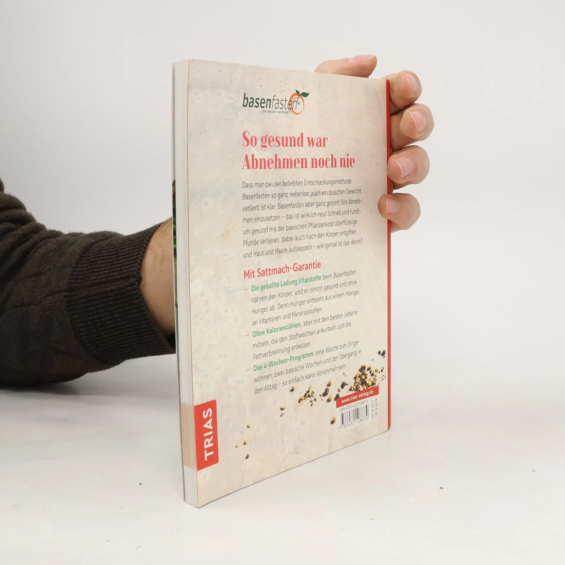 So gesund war Abnehmen noch nie Dass man bei der beliebten Entschlackungsmethode Basenfasten so ganz nebenbei auch ein bisschen Gewicht verliert, ist klar. Basenfasten aber ganz gezielt fürs Abnehmen einzusetzen - das ist wirklich neu! Schnell und rundum gesund mit der basischen Pflanzenkost überflüssige Pfunde verlieren, dabei auch noch den Körper entgiften und Haut und Haare aufpäppeln - wie genial ist das denn? Mit Sattmach-Garantie Die geballte Ladung Vitalstoffe beim Basenfasten nähren den Körper, und er nimmt gesund und ohne Hunger ab. Denn Hunger entsteht aus einem Mangel an Vitaminen und Mineralstoffen. Ohne Kalorienzählen, aber mit den besten Lebensmitteln, die den Stoffwechsel ankurbeln und die Fettverbrennung anheizen. Das 4-Wochen-Programm: eine Woche zum Eingewöhnen, zwei basische Wochen und der Übergang in den Alltag - so einfach kann Abnehmen sein.