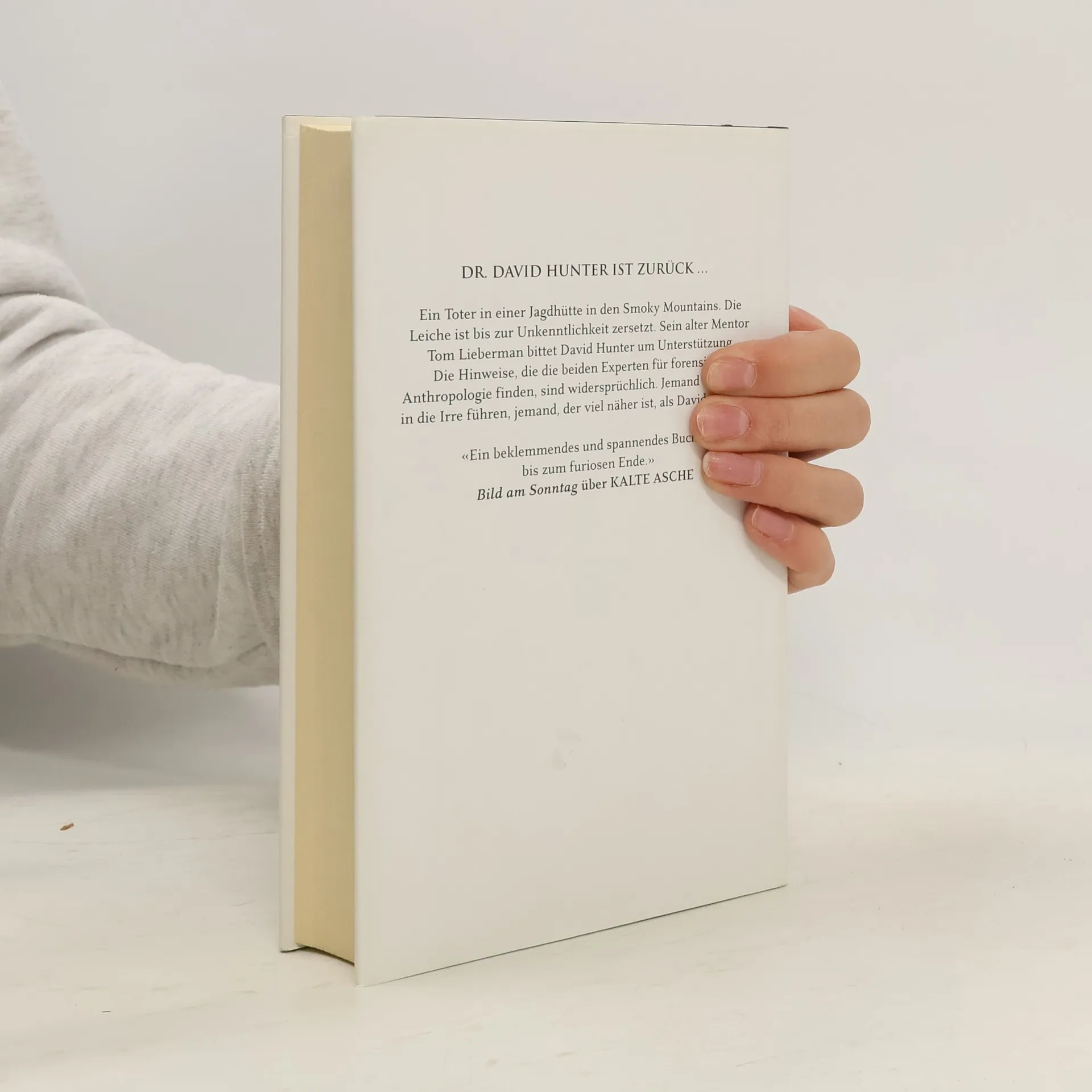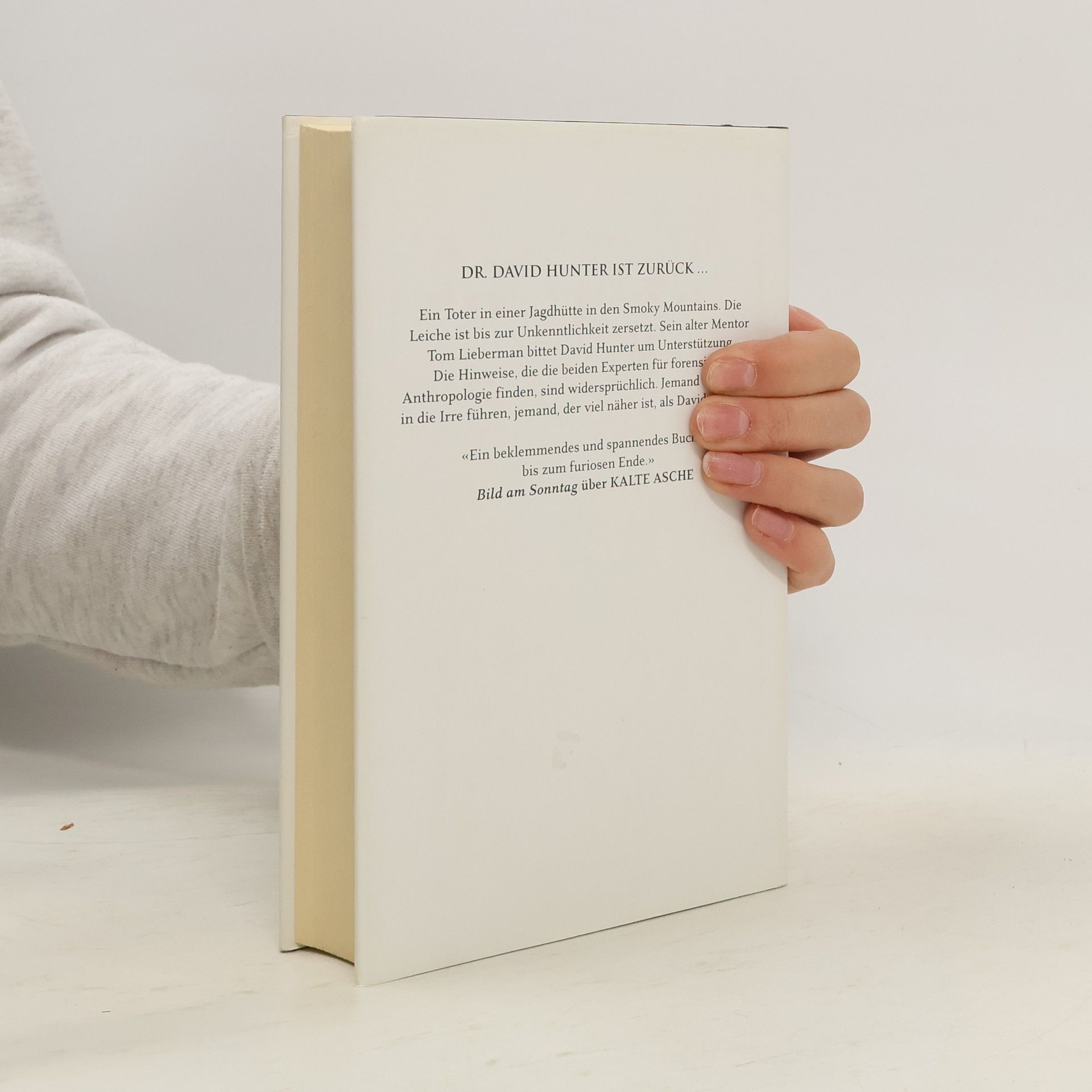 Ein Toter in einer Jagdhütte in den Smoky Mountains. Die Leiche ist bis zur Unkenntlichkeit zersetzt. Sein alter Mentor Tom Lieberman bittet David Hunter um Unterstützung. Die Hinweise, die die beiden Experten für forensische Anthropologie finden, sind widersprüchlich. Jemand will David in die Irre führen, jemand, der viel näher ist, als David glaubt ...