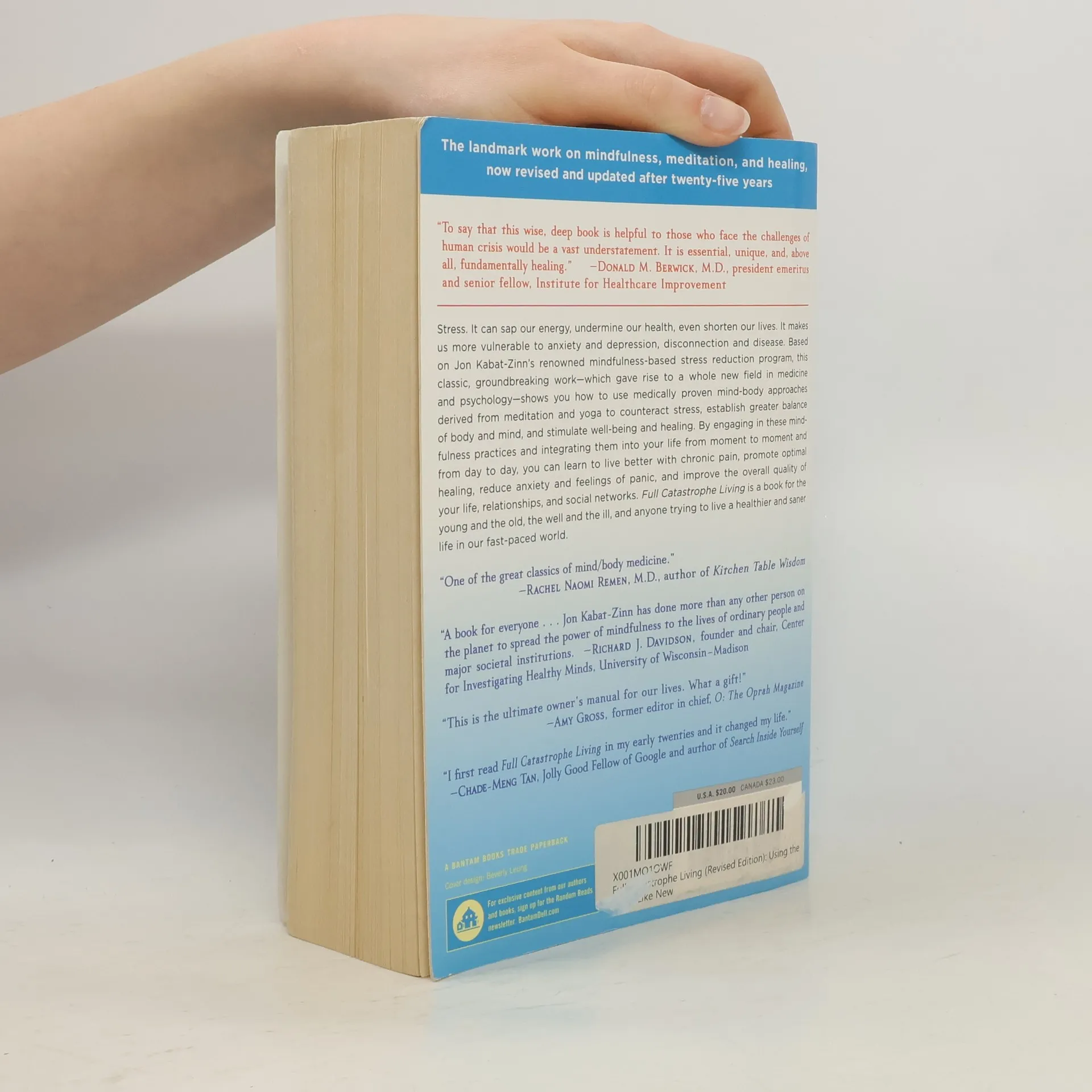 The landmark work on mindfulness, meditation, and healing, now revised and updated after twenty-five years. Stress. It can sap our energy, undermine our health if we let it, even shorten our lives. It makes us more vulnerable to anxiety and depression, disconnection and disease. Based on Jon Kabat-Zinn's renowned mindfulness-based stress reduction program, this classic, groundbreaking work--which gave rise to a whole new field in medicine and psychology--shows you how to use medically proven mind-body approaches derived from meditation and yoga to counteract stress, establish greater balance of body and mind, and stimulate well-being and healing. By engaging in these mindfulness practices and integrating them into your life from moment to moment and from day to day, you can learn to manage chronic pain, promote optimal healing, reduce anxiety and feelings of panic, and improve the overall quality of your life, relationships, and social networks. This second edition features results from recent studies on the science of mindfulness, a new Introduction, up-to-date statistics, and an extensive updated reading list. Full Catastrophe Living is a book for the young and the old, the well and the ill, and anyone trying to live a healthier and saner life in our fast-paced world.--Publisher description