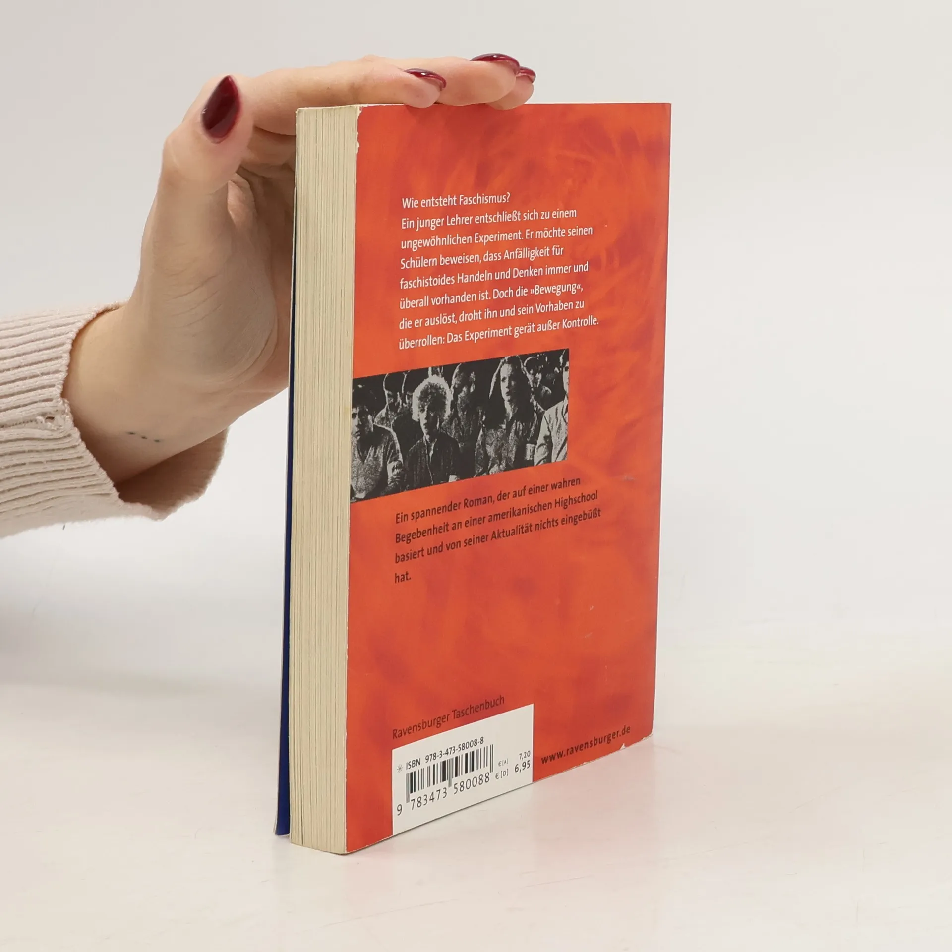 Der Jugendbuchbestseller zum Thema Rechtsextremismus, Faschismus und Nationalsozialismus Wie entsteht Faschismus? Als es im Geschichtsunterricht um Nationalsozialismus und Rechtsextremismus geht, beschließt ein junger Lehrer, ein ungewöhnliches Experiment durchzuführen. Er möchte seinen Schülern beweisen, dass Anfälligkeit für faschistoides Handeln und Denken nicht etwas ist, das nur andere Menschen betrifft – Faschismus ist hier mitten unter uns und in jedem von uns. Doch die „Bewegung“, die er auslöst, droht ihn und sein Vorhaben zu überrollen: Das Experiment gerät außer Kontrolle. Wichtig für den Schulunterricht: Seitenzählung unverändert! Morton Rhues Klassiker DIE WELLE beschreibt eindringlich und gegenwartsbezogen wie leicht Menschen verführt, manipuliert und instrumentalisieren werden können. Der Roman basiert auf wahren Begebenheiten an einer Highschool im kalifornischen Palo Alto. Zu diesem Buch gibt es „Materialien zur Unterrichtspraxis“ der Ravensburger Verlag GmbH.
