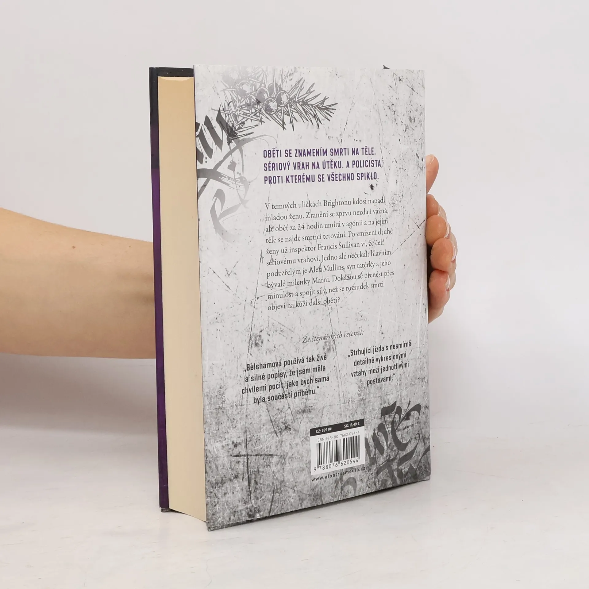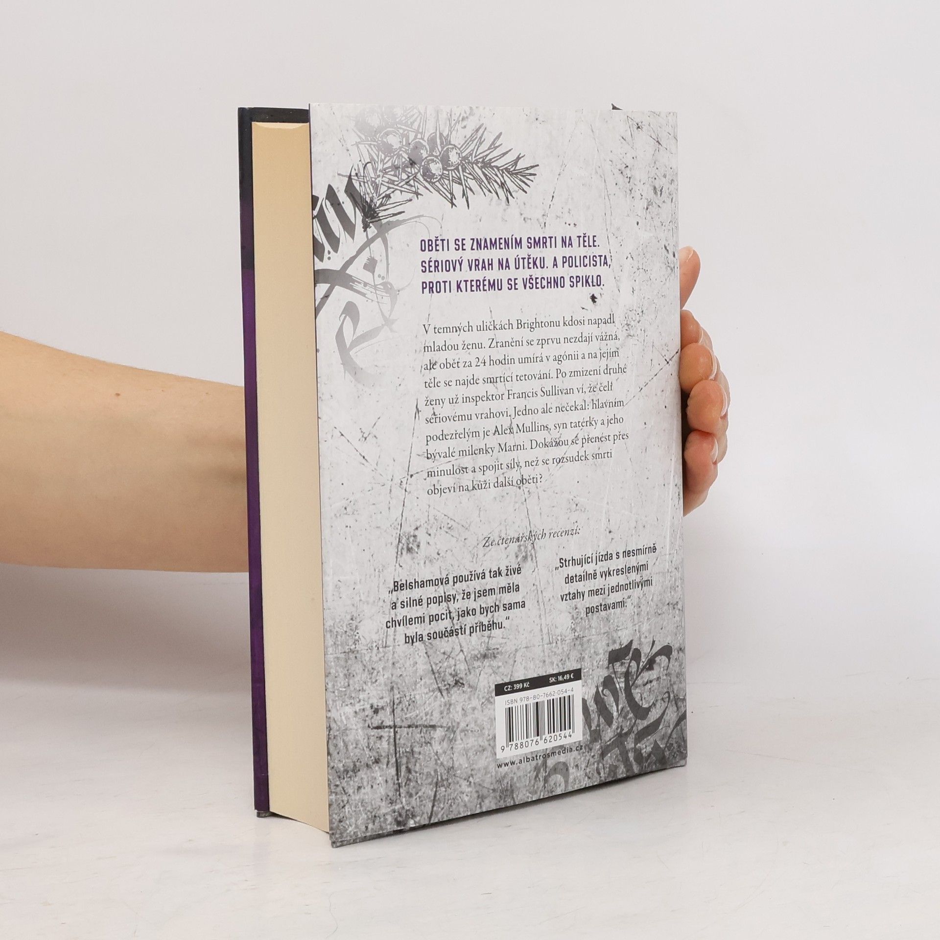 Jeho tetování je rozsudkem smrti. Od autorky bestselleru Tatérka. V temných uličkách Brightonu kdosi napadl mladou ženu. Zranění se zprvu nezdají vážná, ale oběť za 24 hodin umírá v agónii a na jejím těle se najde smrtící tetování. Po zmizení druhé ženy už inspektor Francis Sullivan ví, že čelí sériovému vrahovi. Jedno ale nečekal: hlavním podezřelým je Alex Mullins, syn tatérky a jeho bývalé milenky Marni. Dokážou se přenést přes minulost a spojit síly, než se rozsudek smrti objeví na kůži další oběti?