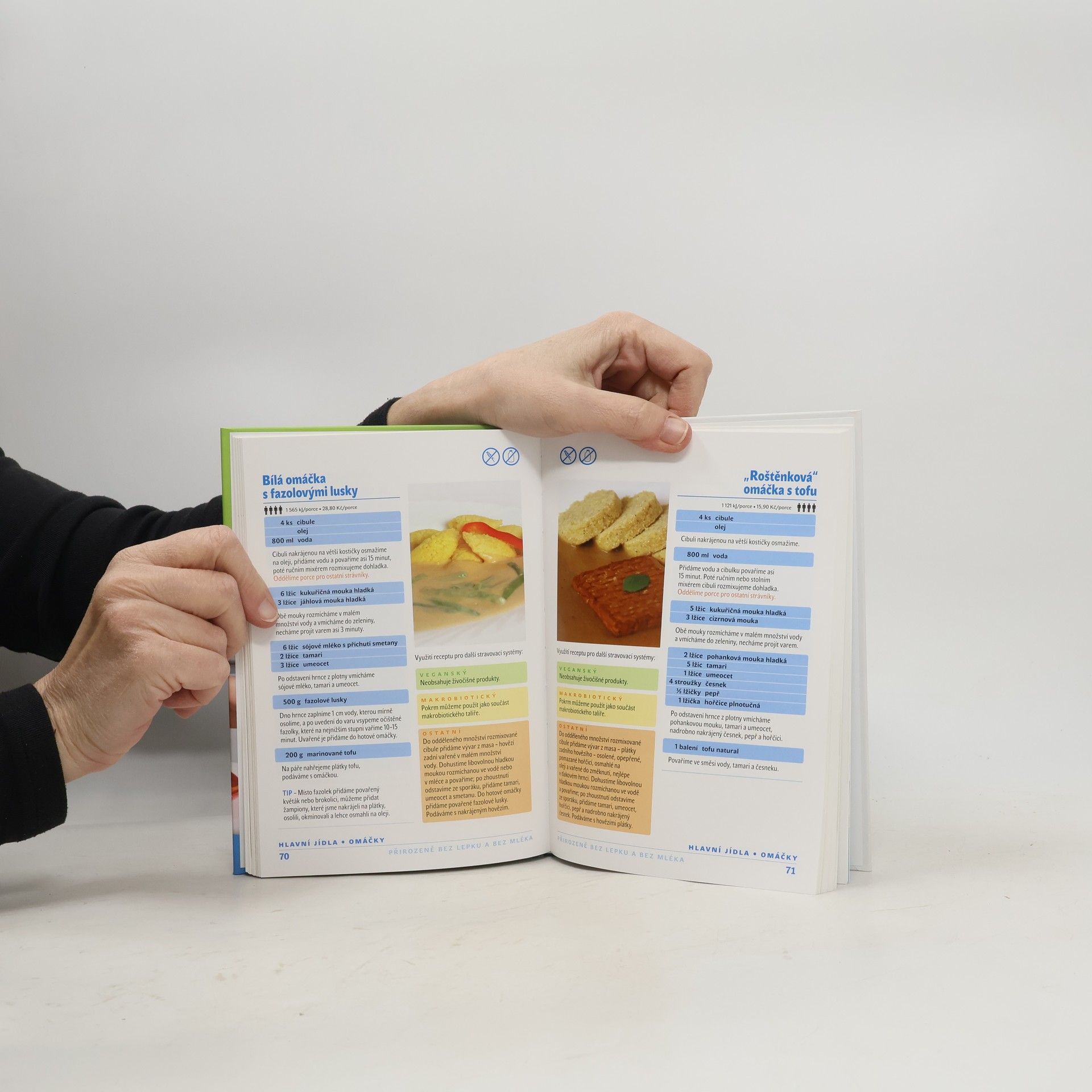 V kuchařce najdete recepty na využití přirozeně bezlepkových obilovin, kterými jsou jáhly, pohanka, rýže a kukuřice. Důraz je kladen také na chutnou úpravu zeleniny, která je základem každého zdravého jídelníčku. Základní recepty jsou bez masa, ale najdete zde i jejich úpravu pro verzi s masem. Lidé, kteří hledají léčebný jídelníček, zde najdou uzpůsobení základního receptu pro makrobiotickou a veganskou stravu. Snadná orientace v receptech je dána jejich rozdělením do kapitol Přílohy, které jsou nejzajímavějším tématem vzhledem k přirozené potřebě nahradit obvyklé pečivo, dále Polévky, Hlavní jídla, Omáčky, Zeleninové přílohy a Dezerty. Recepty obsahují informace o energetické hodnotě a ceně jídla.