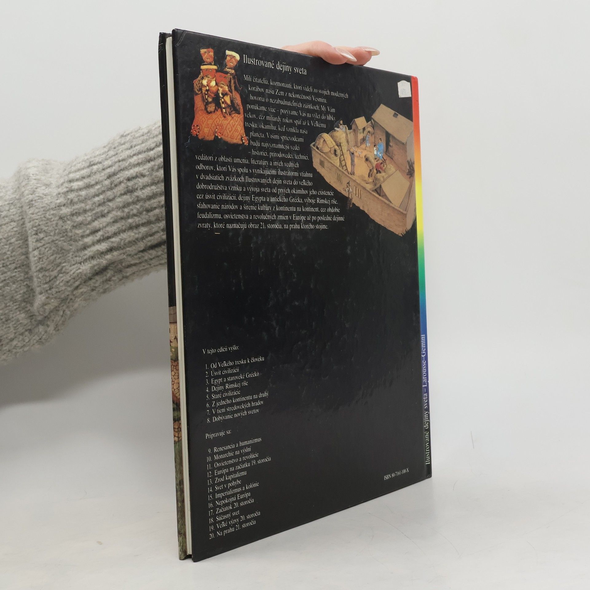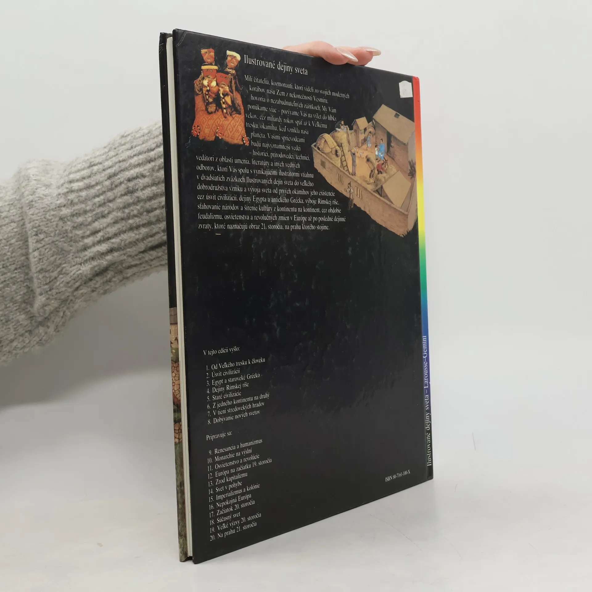 Kapitoly: Indickí mudrci a bojovníci-Veľké mestá, Zrod civilizácie, Obchod a kláštory, Básnici a stavitelia, Indickí myslitelia, Veľkolepé stavby na prelome tisícročí, Moslimské vpády, Šírenie budhizmu. Staroveká Čína-Majstri bronzu, Zem, Ríša, Veľký čínsky múr, Kultúra čínskeho písma, Veľký kanál, Rozkoše Chang-čou, Čínska genialita. V krajine vychádzajúceho slnka-Prví Japonci, Štát Jamato, Čínsky vplyv, Nebezpečné plavby, Heiankjó, hlavné mesto cisárstva, Cisársky dvor, Všedný život, Vzostup bojovníkov, Obdobie bojovníkov. Spomienky na Afriku-Ríša Mali, Mestá a kráľovstvá, Mozaika národov, Africké kulty, Mágia a čarodejníctvo, Poľnohospodárstvo, Nerastné bohatstvo, Remeselníci, Mestá, Africké križovatky, Odev a ozdoby. Americkí indiáni-Boh kukurice, Pueblo Bonito, Mohyla z Cahokie, Olmékovia, "Mesto bohov", "Pelota", Prvé andské mestá, Archeológia v službách budúcnosti. Národy Slnka-Mestské štáty starých Mayov, Meranie času, Osud Mexikov, Aztécka spoločnosť, Ríša Slnka, Cesty Inkov, Sviatky po celý rok, Posledné lúče boha Slnka. Druhé vydanie.