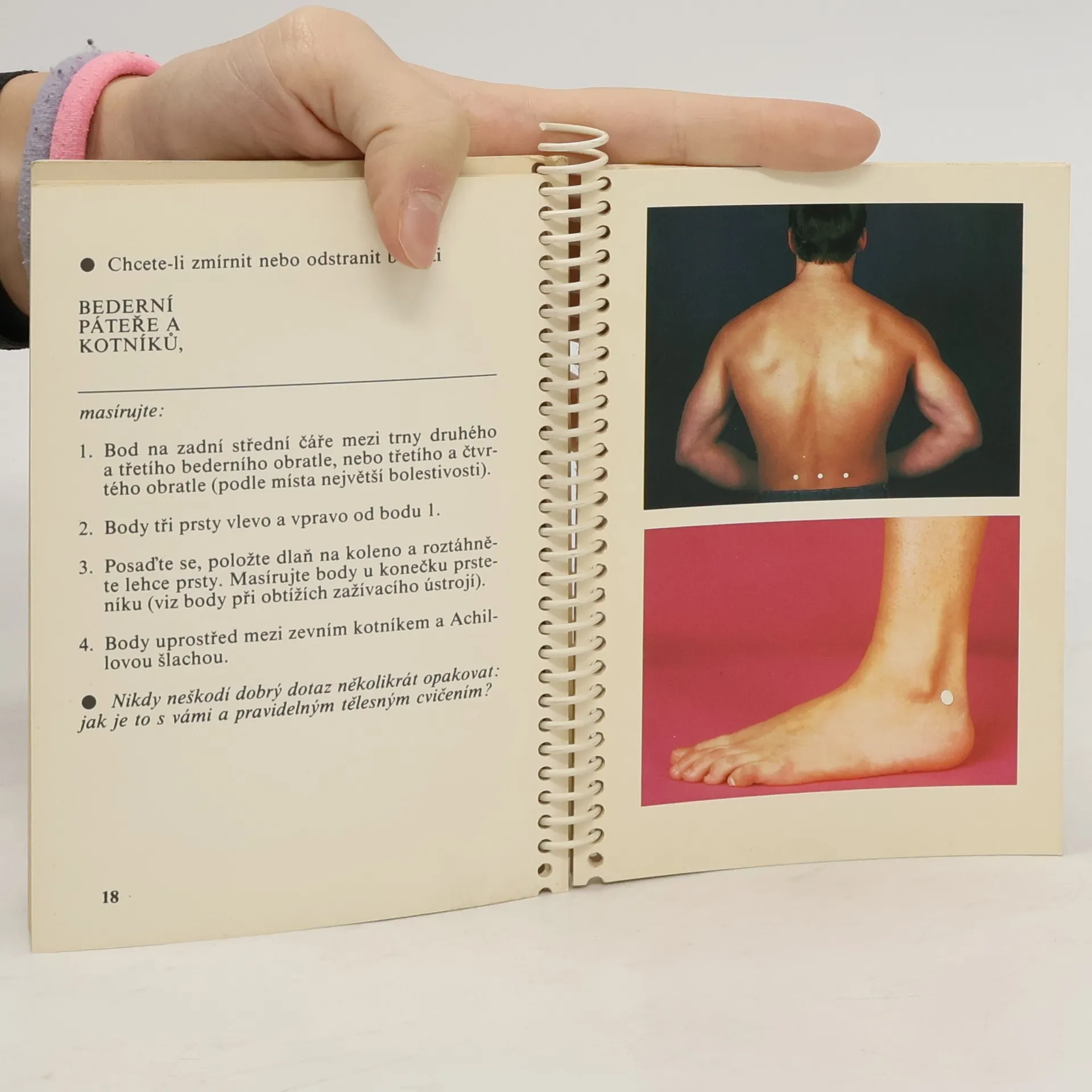 V této knize je podrobný návod na zmírnění a odstranění bolestí a zdravotních problémů pomocí využití akupunkturních bodů. Vše je doprovázeno podrobnými názornými barevnými fotografiemi.