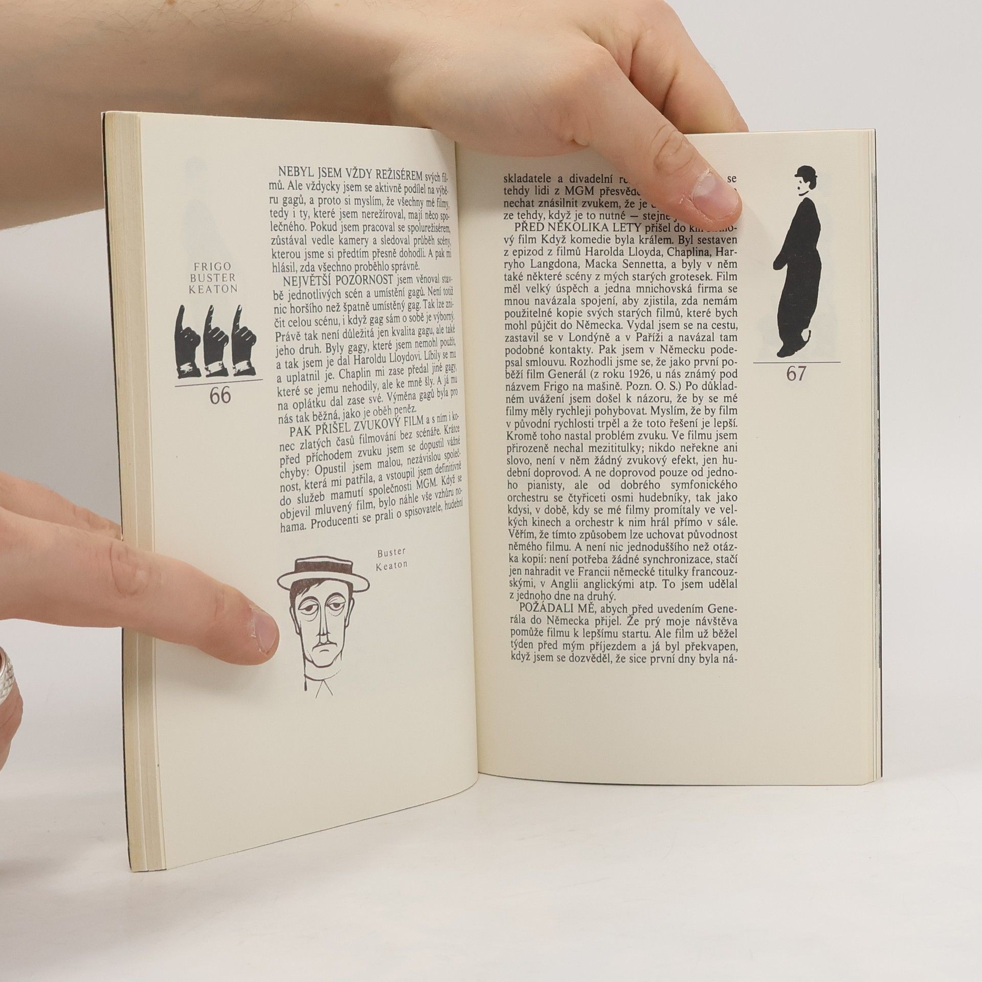 Kniha pokrývá historii němého filmu a grotesky vč. největších herců té doby jako byli Chaplin, Frigo, Laurel a Hardy, Harold Lloyd a další. Součástí knihy je i 32 stránková příloha s fotografiemi herců a slavných scén z grotesek.