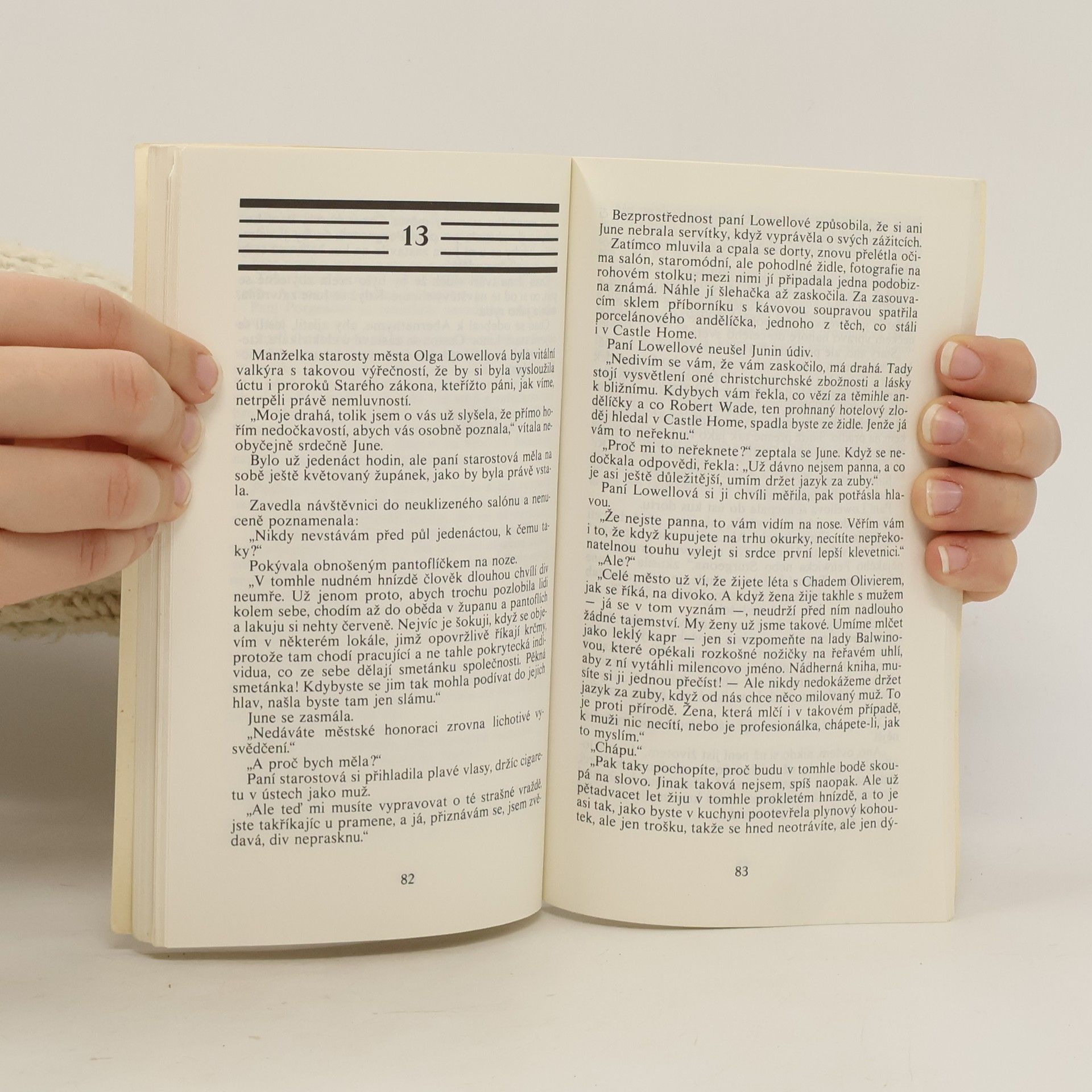 Spisovatel Chad Olivier se ubytuje v hrabství Christchurch v domě zvaném Castle Home, aby tu mohl v klidu pracovat na své nové knize. Netuší, že příběh nového románu se mu zrodí přímo před očima, kdy v Castle Home dojde k dvěma záhadným vraždám. Kdo zabil podivínskou paní Shekleyovou, jsou přívěsky na svícnu pravými diamanty, jakou podivnou úlohu hrají v tomto napínavém příběhu porcelánoví andělíčci, jimž neznámý usekává hlavičky? Rozluštění nabízí čtenáři tento kriminálně rozmarný příběh, napsaný s milou dávkou vtipu a hlavně napětí.