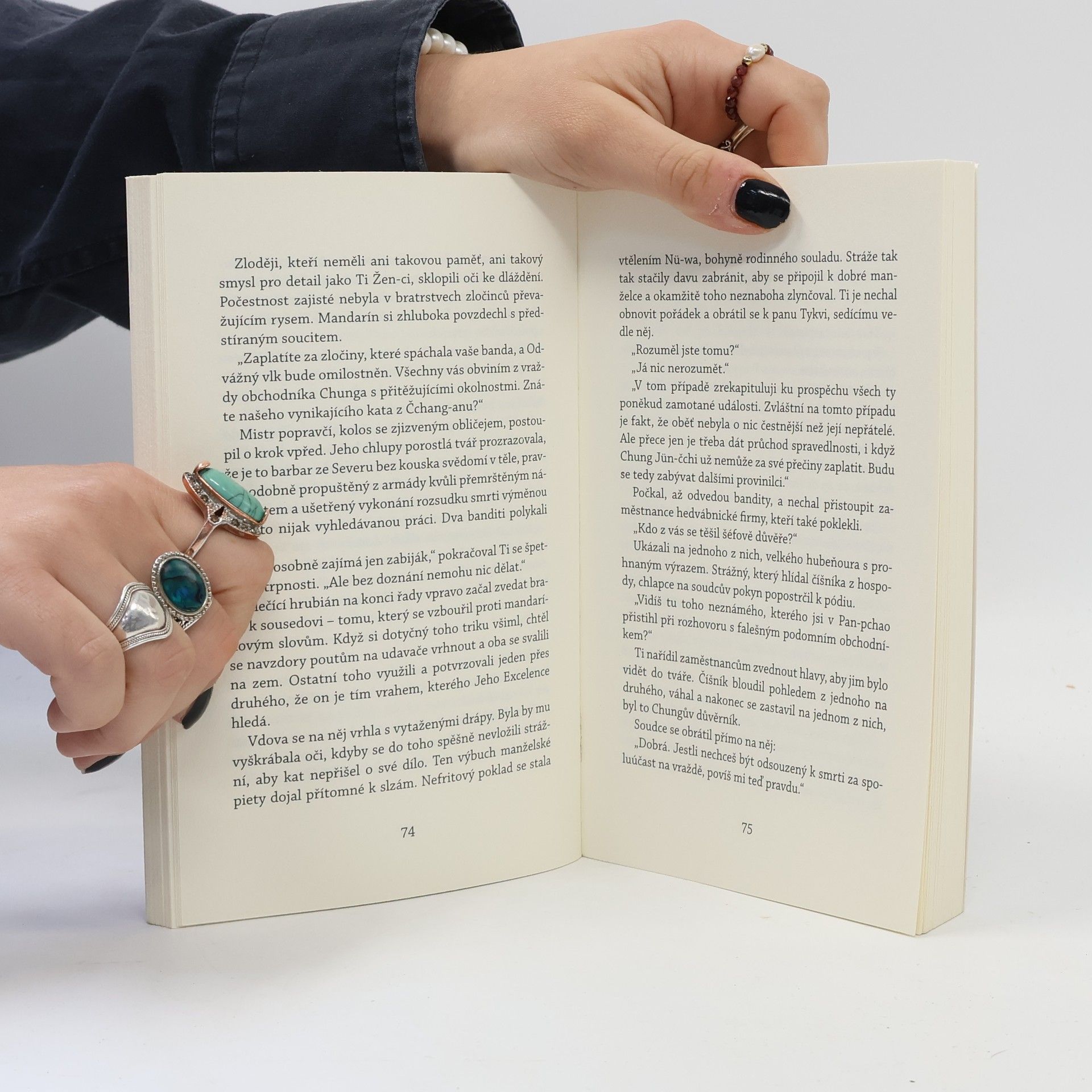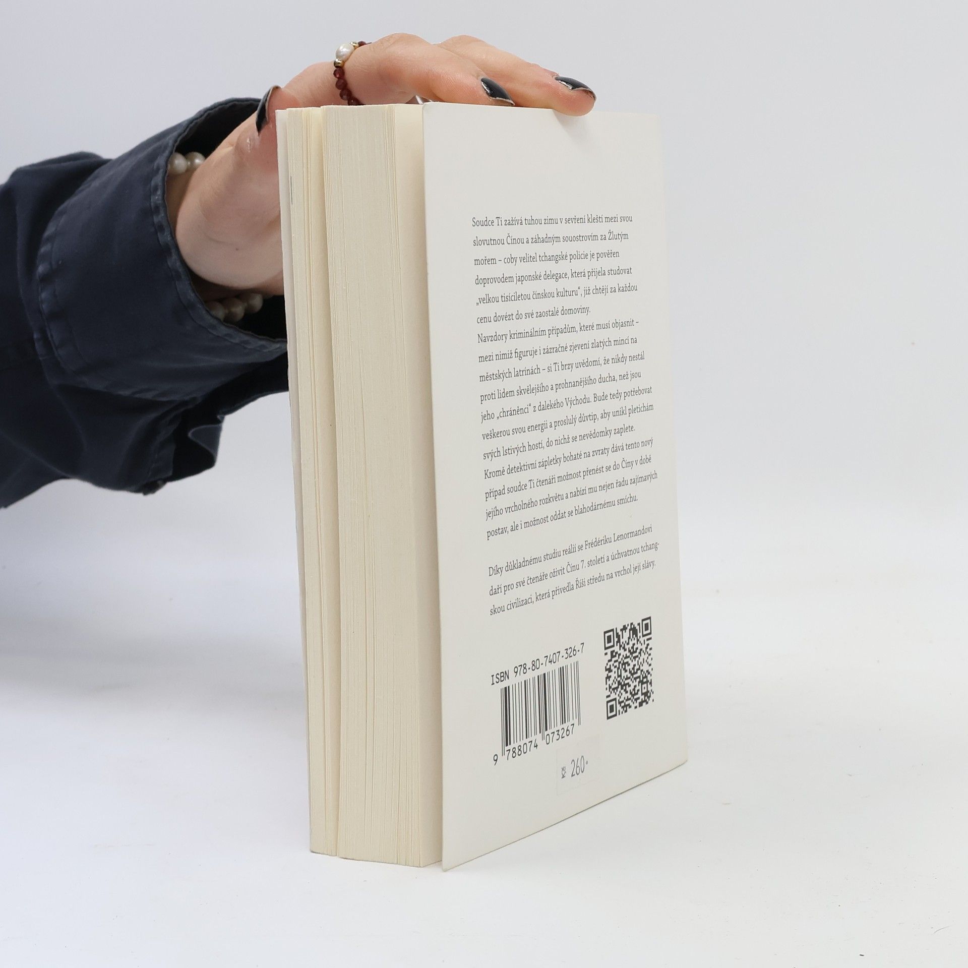 Soudce Ti prožívá tuhou zimu – musí dostát svým povinnostem jak vůči slovutnému čínskému císařství, tak i vůči tajemnému souostroví zpoza Žlutého moře. Coby velitel tchangské policie je pověřen doprovodem japonské delegace, která přijela studovat „velkolepou tisíciletou čínskou kulturu“, již chtějí za každou cenu přivézt do své zaostalé domoviny. Navzdory řadě zločinů, které Ti musí vyřešit – mezi nimiž figurují i zlaté mince, jež se zázračně zjevují na latrínách hlavního města –, si soudce uvědomí, že se ještě nikdy nesetkal s lidmi tak vytříbeného i záludného ducha, jako jsou jeho chráněnci. Bude potřebovat všechnu svou sílu a proslulou prozíravost, aby unikl pletichám lstivých hostí. Nové dobrodružství soudce Ti není jen detektivním příběhem plným zvratů, ale představuje čtenáři i pohled na Čínu na vrcholu moci a umožní mu oddat se blahodárnému smíchu.