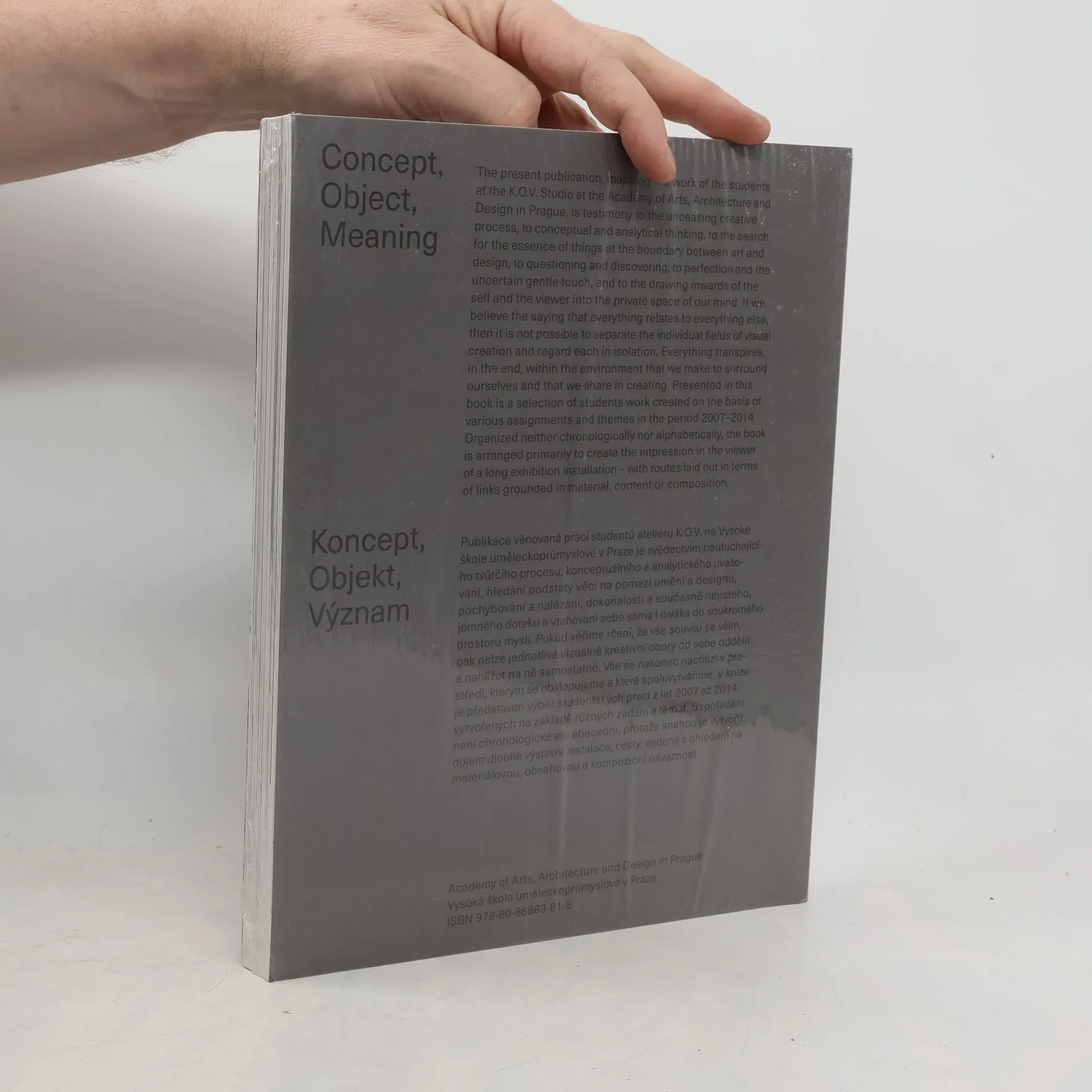 Ateliér K.O.V. Koncept, Objekt, Význam. Sedm let / K.O.V. Studio Concept, Object, Meaning. Seven Years Publikace představuje vybrané studentské práce Ateliéru K.O.V. z období let 2007-2014 a je dokumentem a svědectvím o neutuchajícím kreativním procesu, konceptuálním a analytickém uvažování, o hledání podstaty věcí na pomezí umění a designu……