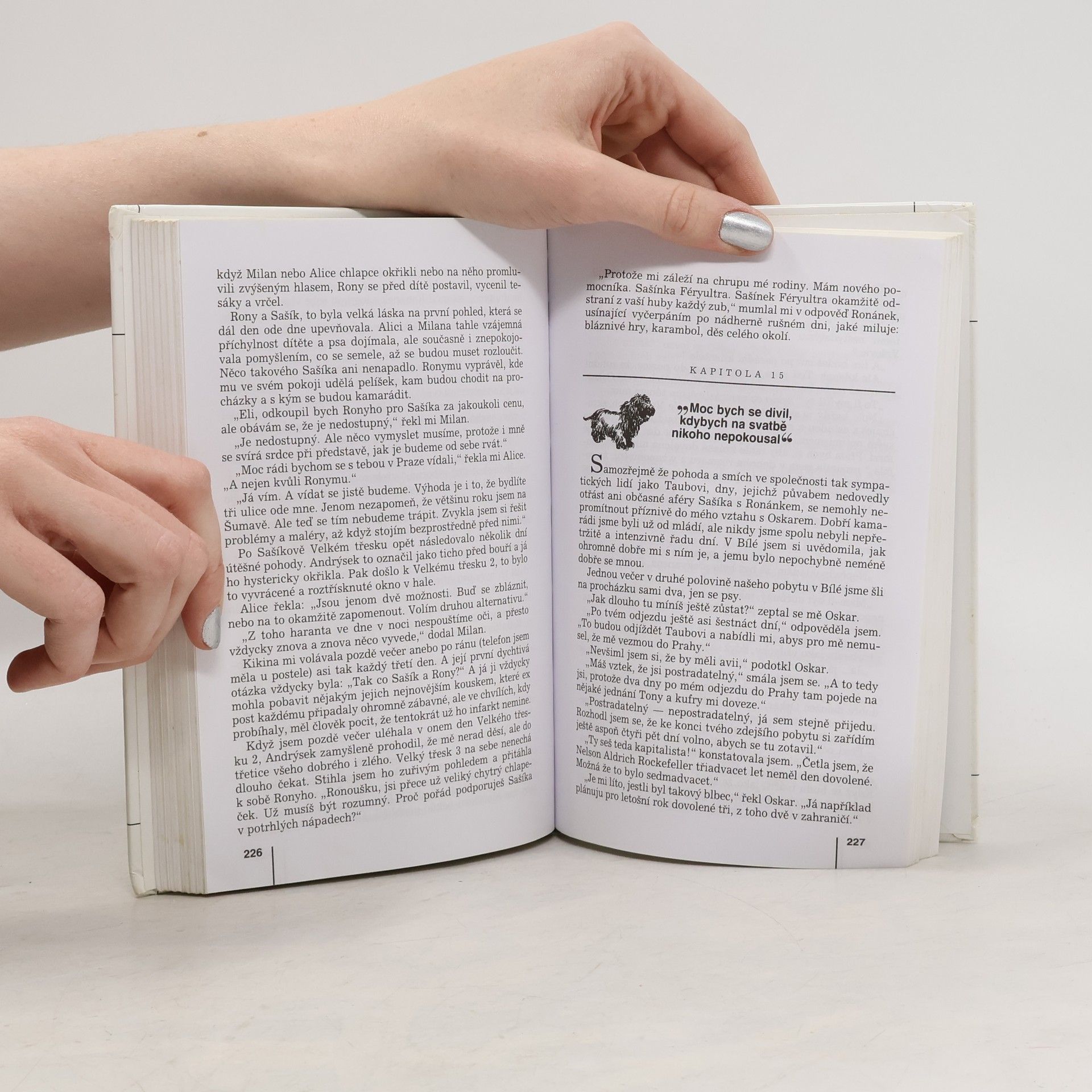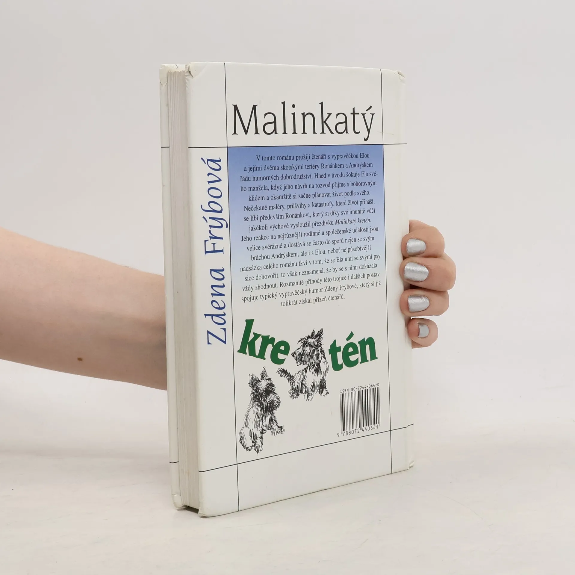 Humoristický román, v němž dva skotští teriéři Andrýsek a Ronánek přesvědčují dámu středního věku, že i po rozvodu může být život báječný a vzrušující. Vypravěčka románu Ela hned v úvodu knihy šokuje svého manžela, když jeho návrh na rozvod přijme s bohorovným klidem a okamžitě si začne plánovat život podle svého. Nečekané maléry, průšvihy a katastrofy, které život přináší, se líbí především Ronánkovi,který se díky své imunitě vůči jakékoliv výchově vysloužil přezdívku Malinkatý kretén.Jeho reakce na různé rodinné a společenské události jsou tak svérázné, že se často poštěká nejen se svým bráchou Andrýskem, ale i s Elou. Nejpůsobivější nadsázka celého románu tkví v tom, že se Ela umí se svými psy sice dohovořit, to však neznamená, že se s nimi shodne. Rozmanité příhody této trojice i dalších postav spojuje typický vypravěčský humor Zdeny Frýbové, který se již tolikrát získal srdce čtenářů.