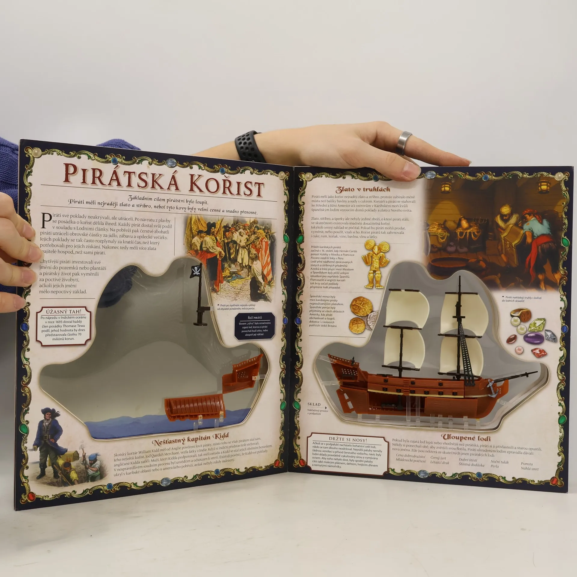 Naloďte se a vstupte do zlatého věku pirátství! Prozkoumejte knihu zhotovenou ve fascinujícím třírozměrném ztvárnění, které představuje revoluci na našem knižním trhu. Odklopením každé stránky ponoříte svůj pohled hlouběji do pirátské brigy. Pomáhat vám bude lehce srozumitelný informativní text, jako stvořený k zapamatování. Detailně provedený model lodě z plastické hmoty je umístěn ve středu knihy a mění se, jako skutečná předloha, při každém natočení knihy a při každém pohledu z jiného úhlu. Vše je proloženo mnohými tipy a návody k experimentům, což změní prosté přečtení knihy v působivý a nezapomenutelný zážitek.
