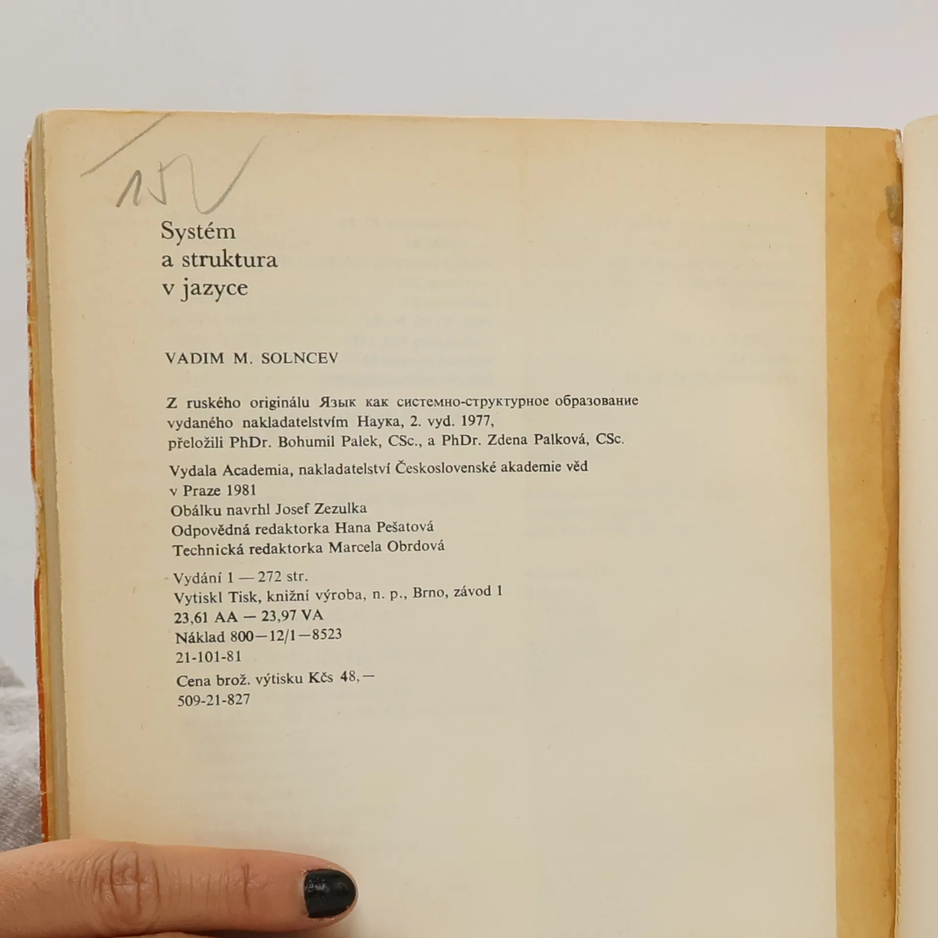 Systém a struktura v jazyce, Zdena Palková, Bohumil Palek, Vadim M. Solncev