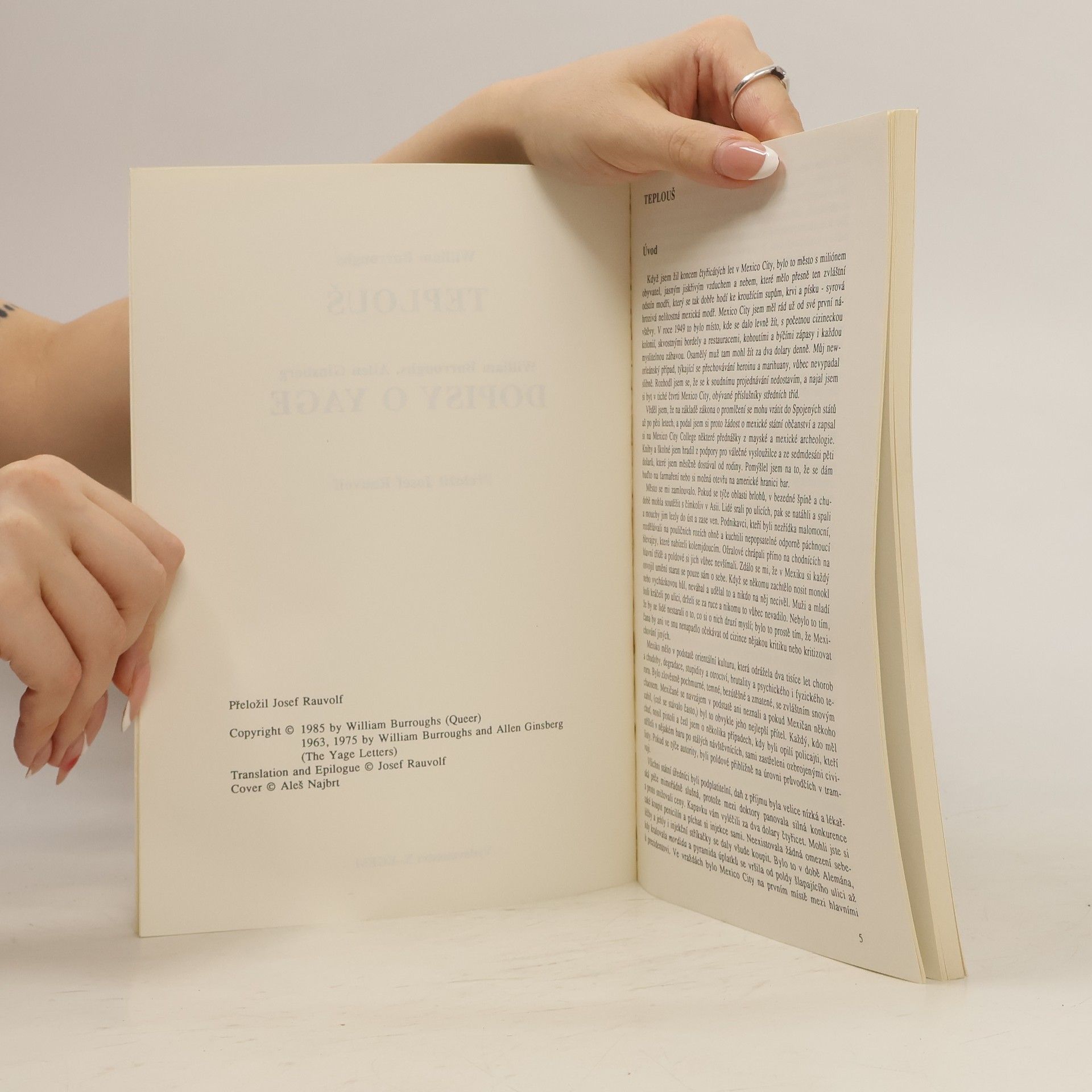 Toto vydání obsahuje dvě knihy – Teplouš (Burroughs) a Dopisy o Yage (Burroughs / Ginsberg). „Protagonista mého prvního románu Feťák, Lee, se jeví jako zcela integrovaný a soběstačný, jistý si sám sebou i tím, kam směřuje. V Teploušovi je rozložený, zoufale někoho potřebuje, ať užznámého nebo prostě nějaký kontakt, je naprosto nejistý sám sebou i smyslem své existence.“ Kniha, která nás opět díky svému věcnému jazyku a suchému stylu, temnému humoru a agresivní energii uvádí do Burroughsových vizí, jež se už dávno staly skutečností. Kniha byla napsána v roce 1952, poprvé však vyšla až v roce 1985, česky pak v roce 1991.