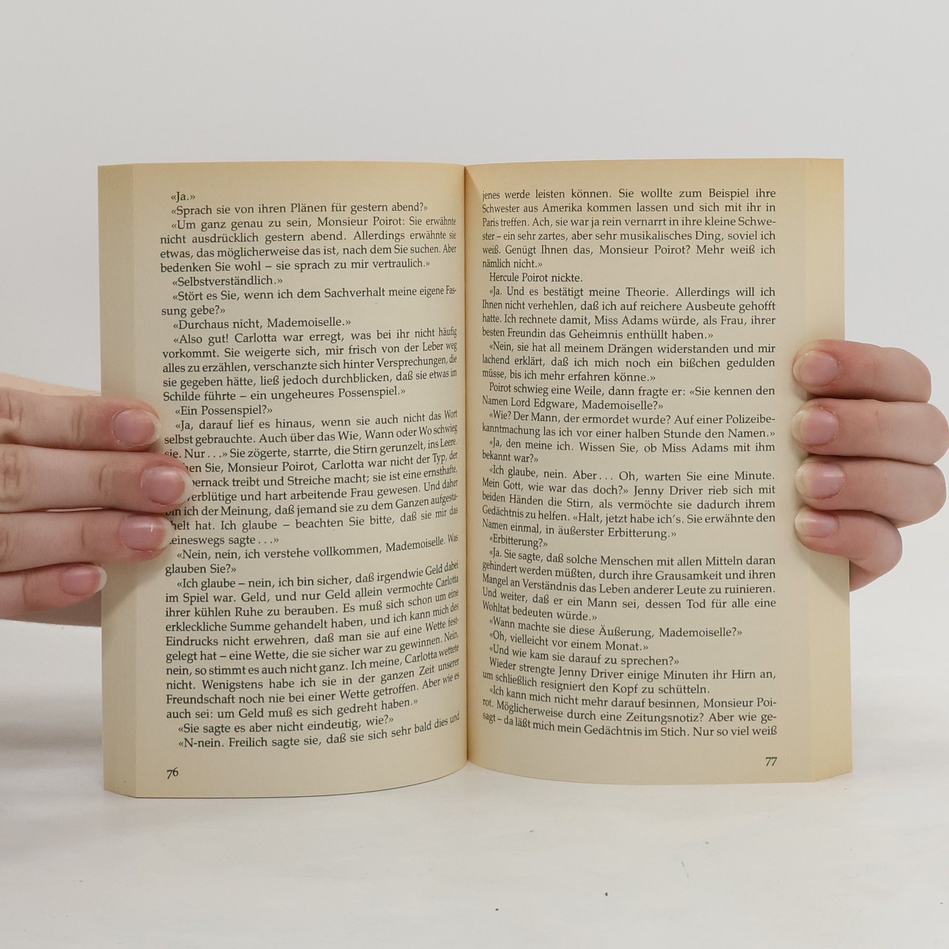 «In letzter Zeit habe ich so häufig gedacht: wenn Edgware doch nur stürbe!... Und eins, zwei, drei! Ist er tot! Man könnte beinahe meinen, es sei eine Antwort auf mein Gebet.» Die berühmte Schauspielerin Jane Wilkinson verhehlt nicht, daß ihr der Tod ihres Gatten Lord Edgware sehr gelegen kommt, wollte sie ihn doch gegen einen neuen tauschen - natürlich nur gegen einen noch reicheren, noch blaublütigeren. Merkwürdig nur, daß der Lord erst am Abend vorher gegenüber dem Vermittler Hercule Poirot einer Scheidung zugestimmt hatte. Und merkwürdig auch, daß Lady Edgware beim Betreten seiner Bibliothek gesehen wurde, wo sie doch zum selben Zeitpunkt mit zwölf anderen Gästen bei Sir Montague Corner dinierte...