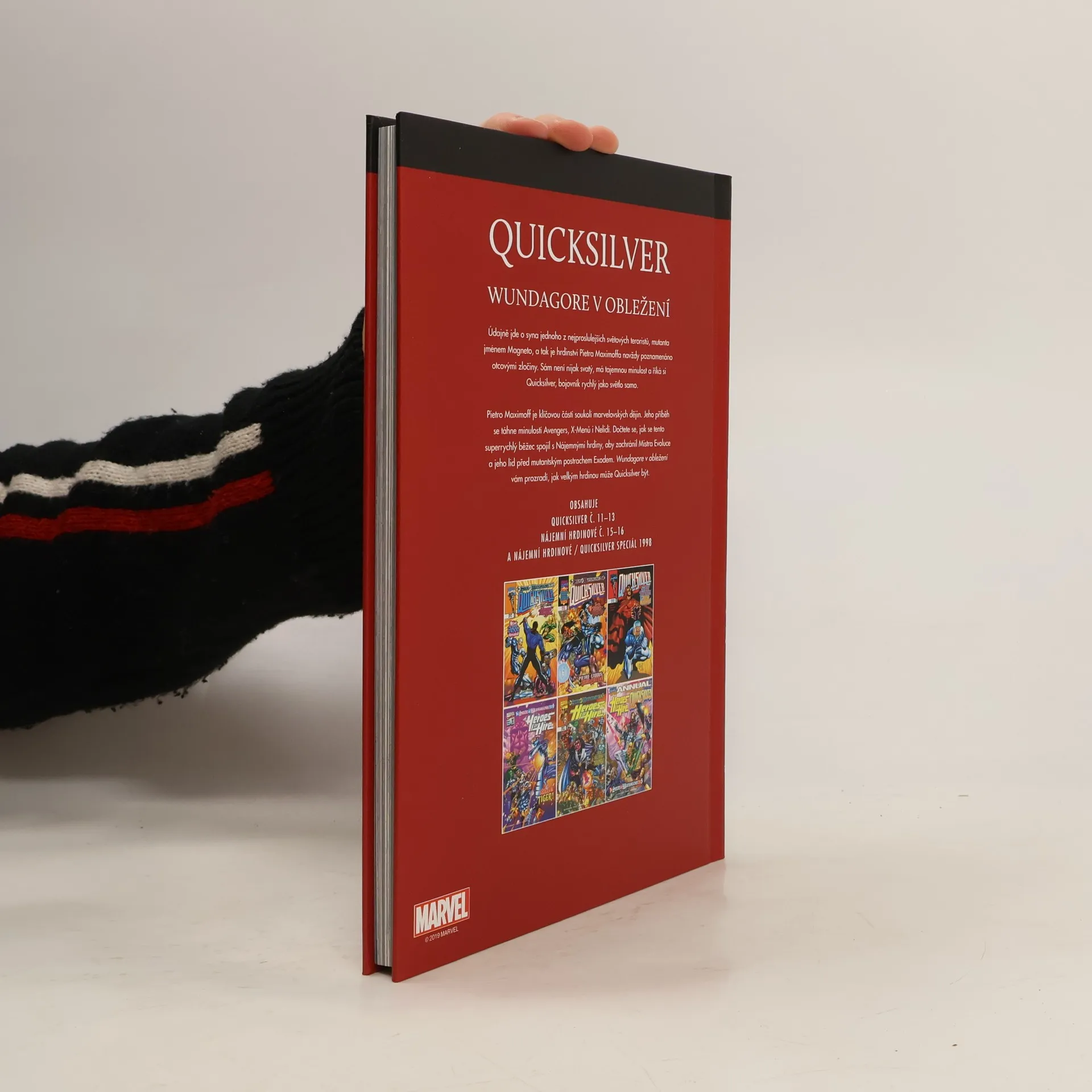 Údajně jde o syna jednoho z nejproslulejších světových teroristů, mutanta jménem Magneto, a tak je hrdinství Pietra Maximoffa navždy poznamenáno otcovými zločiny. Sám není nijak svatý, má tajemnou minulost a říká si Quicksilver, bojovník rychlý jako světlo samo. Pietro Maximoff je klíčovou částí soukolí marvelovských dějin. Jeho příběh se táhne minulostí Avengers, X-Menů i Nelidí. Dočtete se, jak se tento superrychlý běžec spojil s Nájemnými hrdiny, aby zachránil Mistra Evoluce a jeho lid před mutantským postrachem Exodem. Wundagore v obležení vám prozradí, jak velkým hrdinou může Quicksilver být. Obsahuje Quicksilver č. 11-13, Nájemní hrdinové č. 15-16 a Nájemní hrdinové/Quicksilver Speciál 1998.