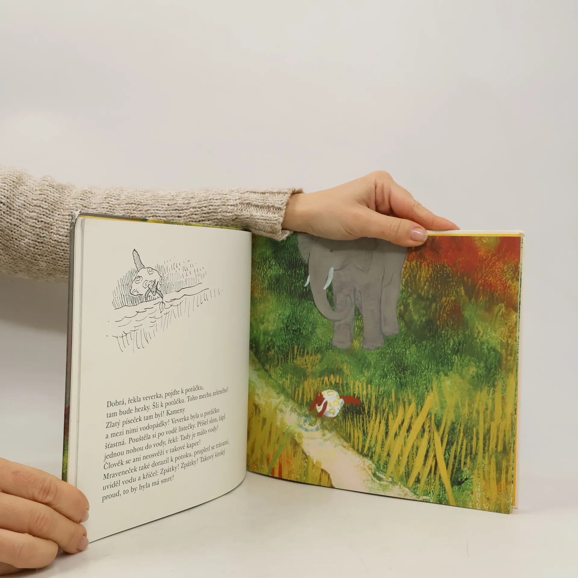 Někdy je docela těžké žít spolu, když jsme každý docela jiný: jeden moc velký, druhý malinkatý a třetí tak akorát. Tak jako slon, mravenec a veverka v krásné a dnes už klasické knížce malířky, ilustrátorky a průkopnice autorských knih pro děti Daisy Mrázkové. Každý z těch tří touží po něčem jiném. Ale když jde o to zachránit život veverce, rozdíly jdou stranou a najednou se může náramně hodit být malinký – jako mravenec – i obrovský – jako slon. Tento srozumitelný a chytrý příběh o drobných potížích rodinného života, velkém přátelství a odvaze v každém z nás skrývá základní otázky lidského života podané s nenapodobitelným jemným humorem a v doprovodu výborných ilustrací. Pro děti od tří let.