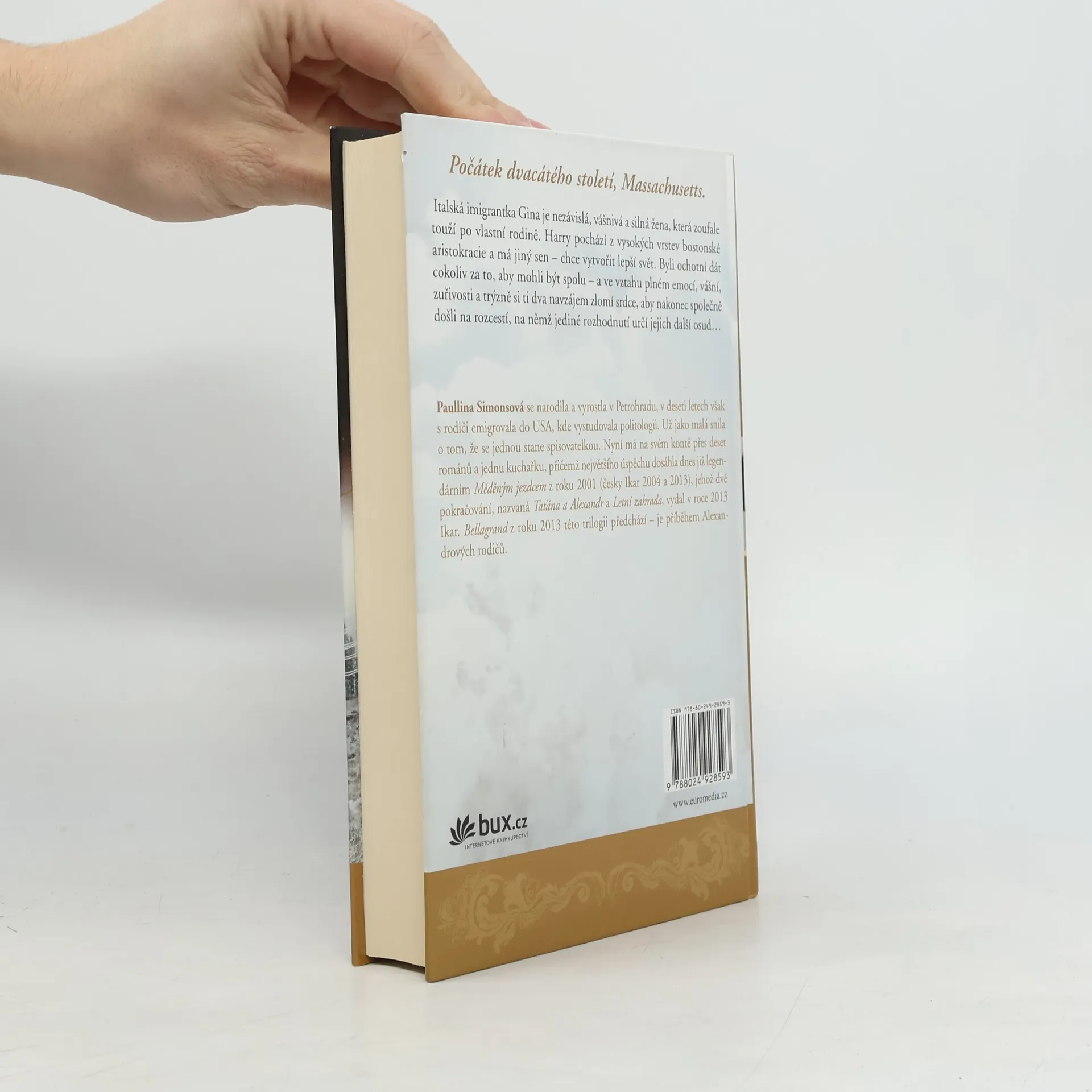 Počátek dvacátého století, Massachusetts. Italská imigrantka Gina je nezávislá, vášnivá a silná osobnost, která zoufale touží po vlastní rodině. Harry pochází z vysokých vrstev bostonské aristokracie a má jiný sen – chce vytvořit lepší svět. Byli ochotní dát cokoliv za to, aby mohli být spolu – a ve vztahu plném emocí, vášní, zuřivosti a trýzně si ti dva navzájem zlomí srdce, aby nakonec společně došli na rozcestí, na němž jediné rozhodnutí určí jejich další osud. Román klenoucí se přes dva kontinenty a čtyři desítky let z pera autorky Měděného jezdce.