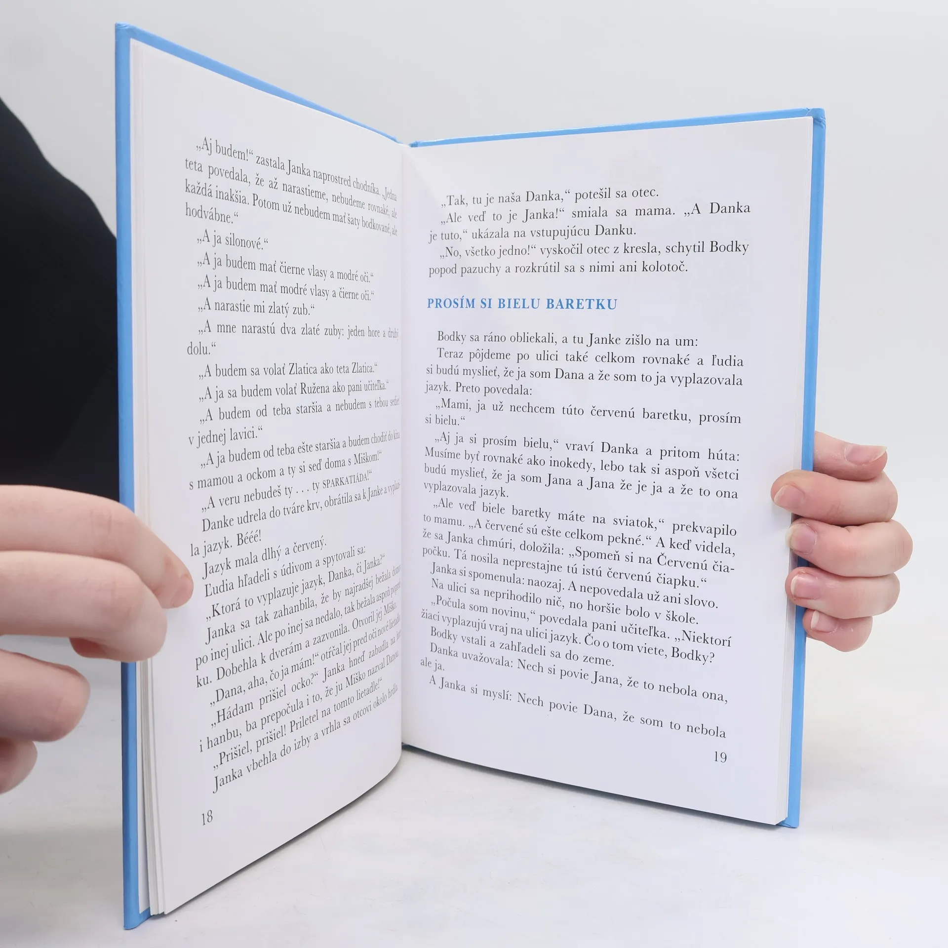 Danka a Janka Botkové, žiačky 1.B sú navlas rovnaké: oči celkom hnedé a veselé ako gaštanček, plavé vlasy , ostrihané na ofinu, nosy trošku vyhrnuté a veľmi všetečné. Mama ich rozozná vždy, otec niekedy a brat Miško málokedy. Sú celkom rovnaké, tak keď sa Janka pozrie do zrkadla, nie si je istá, či vidí seba alebo sestru Danku a keď sa Danka pozrie na Janku, nevie naisto, či to vidí sestru alebo seba v zrkadle. A rozprávky milujú rovnako vášnivo. Hocikedy sa vyberú do rozprávky. Chytia sa za ruky, spravia hop a sú v rozprávke. Spoznajú tak medveďa Demetera, Gevenduchu, Človiečika z budíka, sloní korienok, slimačí domček, zázračný klobúčik, všadebola a iné rozprávkovo-zázračné veci, ktoré sú vďaka ilustráciám Boženy Plocháňovej ešte čarovnejšie. Kniha se skládá ze dvou původně samostatných knih: Danka a Janka, Danka a Janka v rozprávke. 8. spoločné vydanie